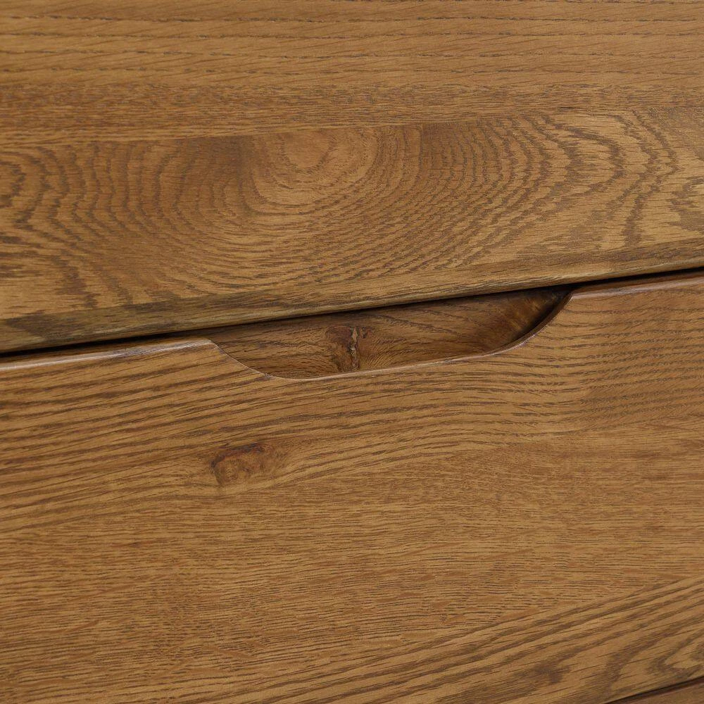 Bring a dose of elegance and charm to your bedroom with our versatile Aldo dresser in brown oak wood with black metal legs. The modern and streamlined dresser allows the rich grains of Oakwood to stand out. Unlike other hardwood materials, oak wood furniture requires minimal maintenance. Because it is a dense wood, it does not scratch or stain easily. Thus, you can keep it looking brand-new, like when you first purchased it. All you need to do is dust it and apply furniture wax at least every 6-months to 9-months. Elegantly simple and versatile, the dresser invites natural warmth and elegance to your bedroom, but can be used for storage in your entryway, home office, or living room. Use a dresser as a console table placed at the back of your sofa, use a dresser that’s either the same height or lower than your sofa’s back. Create a more functional foyer with your dresser to hold seasonal items such as gloves and scarves while placing keys and mail on top. The Aldo dresser is elevated upon sleek black metallic legs to attain a light and airy feel. Featuring 2 open shelves, the dresser can keep the things in daily use within easy reach. While its 4 spacious drawers are sufficient to hold your linens and clothing, keeping your home organized and tidy.