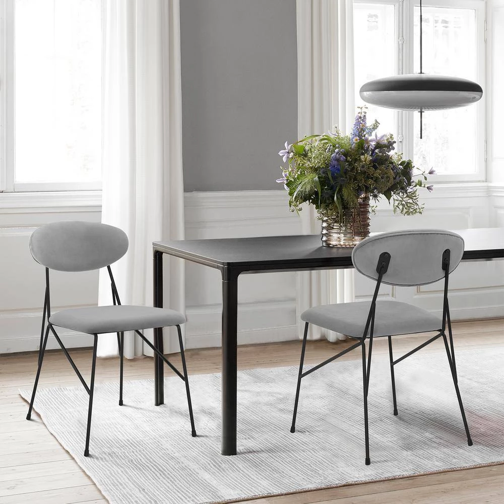The Armen Living Alice Modern Velvet Set of 2 Metal Dining Room Chairs is a great addition to your beautiful home. The Alice chairs the perfect chairs to bring into your living space, featuring a minimalist metal frame and smooth, soft, and silky velvet upholstery. The materials used to craft the Alice are the highest quality – creating a seating option that can endure everyday wear and tear and give you years of enjoyment. The legs are tipped with rubber caps to prevent sliding on or scratching floors.