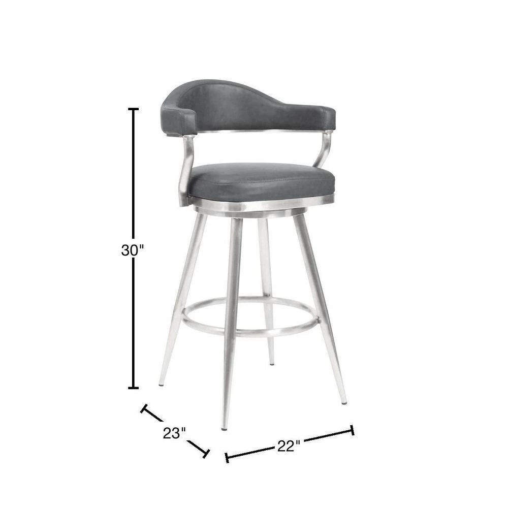 - Amador 30 in. bar height Bar Stool in brushed stainless steel and vintage grey faux leather