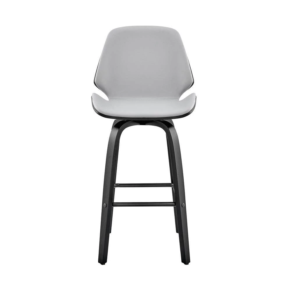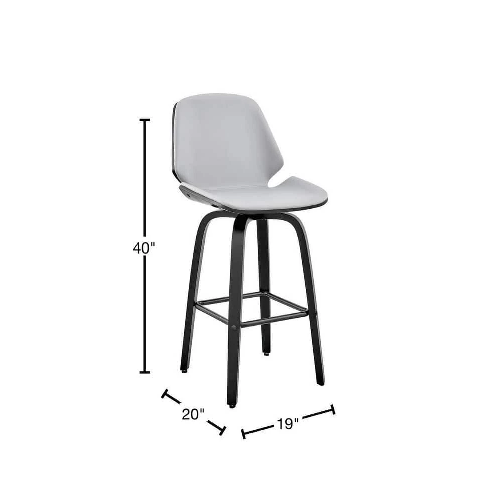 The Arabela 26″ Grey Faux Leather and Black Wood Swivel Bar Stool from Armen Living features a clean design that is ready to complement any home decor. The Arabela was crafted with your convenience in mind – offering a full 360-degree swivel function to enhance your mobility while you remain seated. The tall seatback and wide seat of the Arabela wrap around plump foam padding, which creates an extra comfortable seating experience. This stool is crafted with a lightweight, but strong frame that allows you to reposition this stool with ease. The Arabela is available in your color choice of grey, cream, or brown faux leather with walnut wood or grey faux leather with black wood. Product Dimensions: W:18.50 x D:20 x H:40 x SH:26
