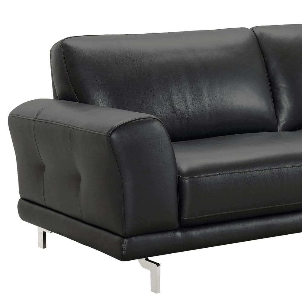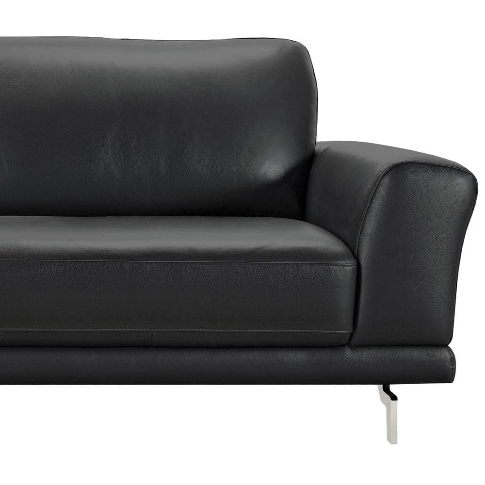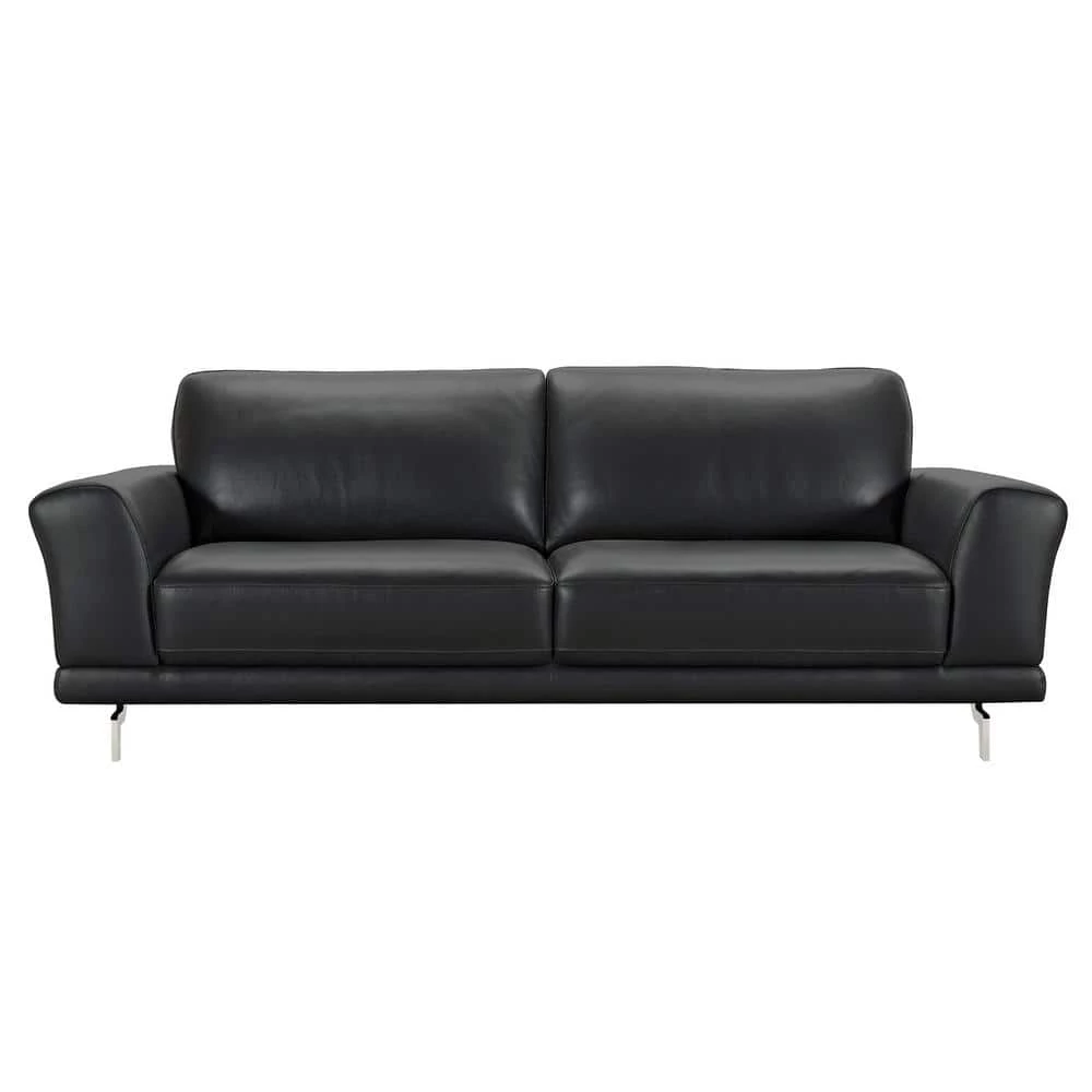The Armen Living Everly contemporary genuine leather sofa is a perfect choice for any modern household. Coupling premium genuine cowhide leather with the comfort of plush Dacron padding, the Everly delivers a sophisticated style accompanied by an exceptional degree of comfort. The Everly’s sleek upholstery is maintained by the plush Dacron padding, assuring that the leather will not crack or wrinkle after prolonged use. Though almost traditional in appearance, the Everly’s unique design combines the classical comfort of leather with contemporary elements such as its brushed stainless steel legs to bring you a sophisticated, yet modern piece. The Everly sofa is ideal when paired with the Everly chair and loveseat. Available in your choice of rich black or dove grey leather.