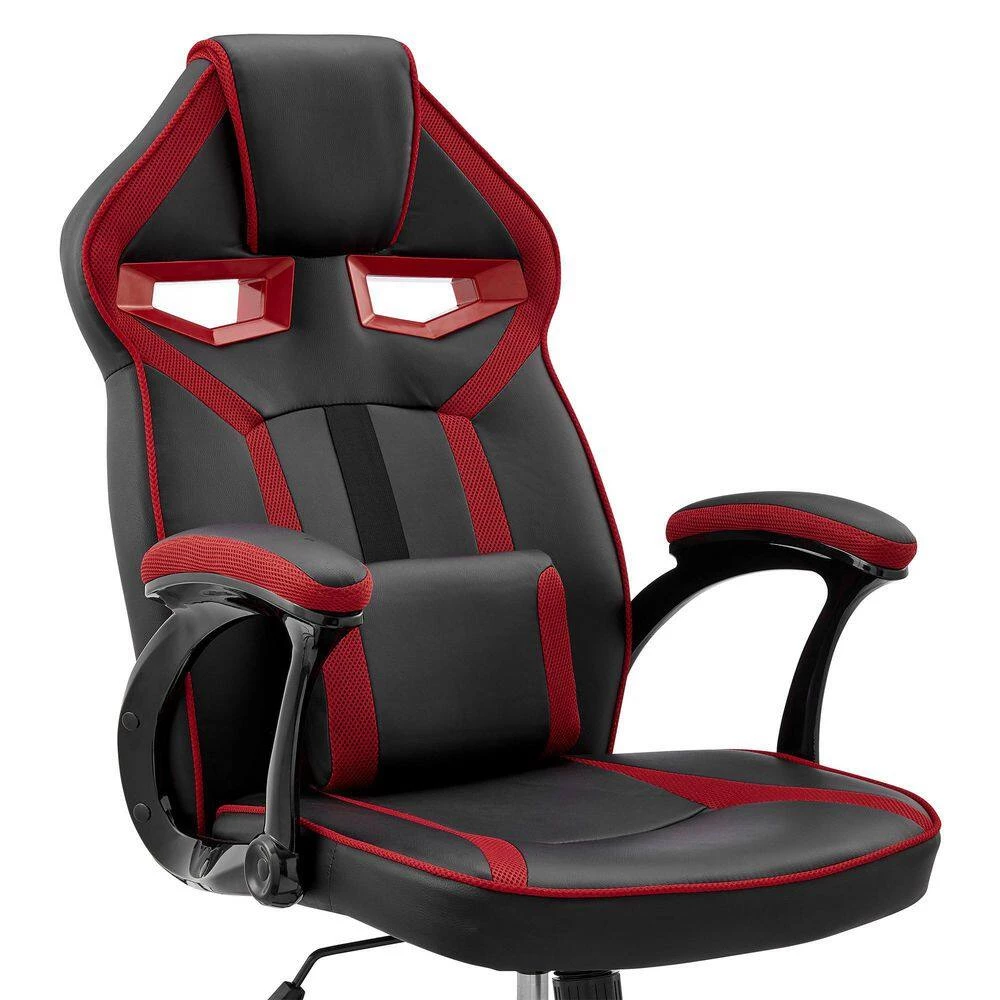 Aspect Black and Red Upholstery Black Finish Faux Leather Gaming Chair with Arms and Lumbar Support by Armen Living