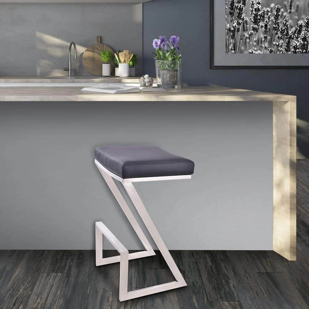 The Atlantis 26″ Backless Barstool may not be your typical barstool, but don’t let its stature fool you; this barstool can, and will, make for an addition to your small kitchen or bar. Suited for a smaller or shorter space, the Atlantis will fit just where you need it to. The backless design allows you to save space vertically, allowing even possible storage underneath a bar when it’s not being used. But don’t think because of its size the Atlantis lacks comfort; the black faux leather upholstery not only looks great but offers a rather comfortable place to rest, and the Brushed Stainless-Steel finish frame provides the proper structure and style for the small area in your home. This piece provides both style and function with an eye-catching geometric steel base that can easily be integrated into your home’s existing decor. The plush and thick cushion padded seat with high-density foam will provide you with all-day comfort. This product is ideal for posture alignment while keeping you stay active while sitting down. This product ships in one box with easy and fully assembled. We stand by the quality, the craftsmanship, and the integrity of our product by offering a 1-year for all our products. We want our customers to enjoy our product and we will always be there to help with our top-notch customer service support. Available in 26″ counter Height and 30″ bar Height options in color Gray, Black, White