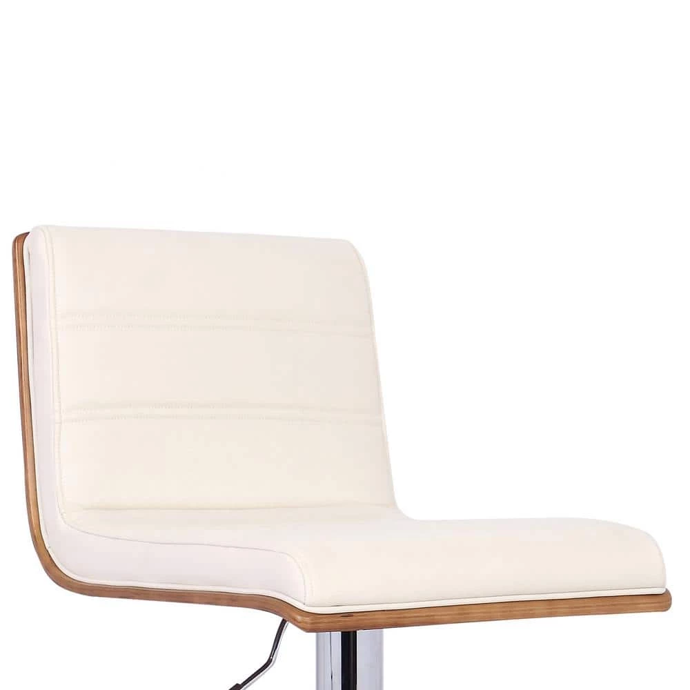 - The Aubrey swivel bar stool is a rich, contemporary addition to any dining or bar with walnut wood shell and a chrome pedestal base