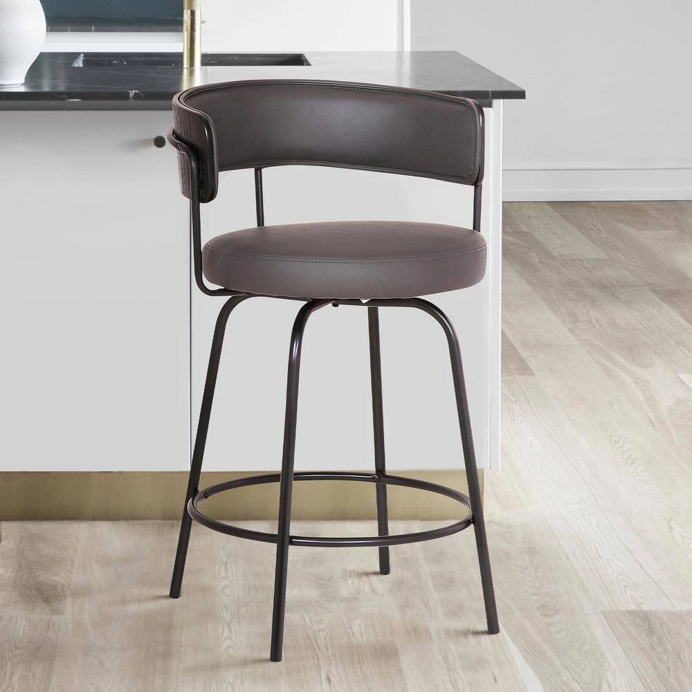 Update your kitchen counter or bar area with the Avalon Barstool. Available in 26-Inch counter height and 30-Inch bar height, this clean, minimalist design with rich faux leather upholstery while surely update the decor in any room of your house. Featuring a curved back with black brushed wood, padded faux leather seat, and ring footrest, this bar stool allows you to lounge in easy comfort. Highly crafted and beautifully simple, this contemporary barstool also offers the ability to swivel 360-degrees, allowing you to find just the right seating position in your home. A steel frame with a black powder coat finish offers sturdy and durable performance and will make this product last. We stand by the quality, the craftsmanship, and the integrity of our product by offering a 1-year warranty for all our products. We want our customers to enjoy our product and we will always be there to help with our top-notch customer service support.