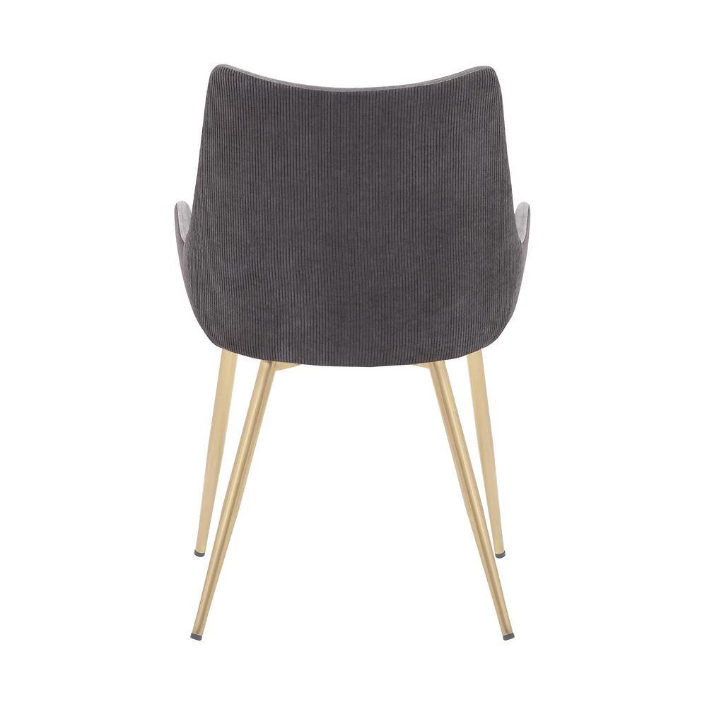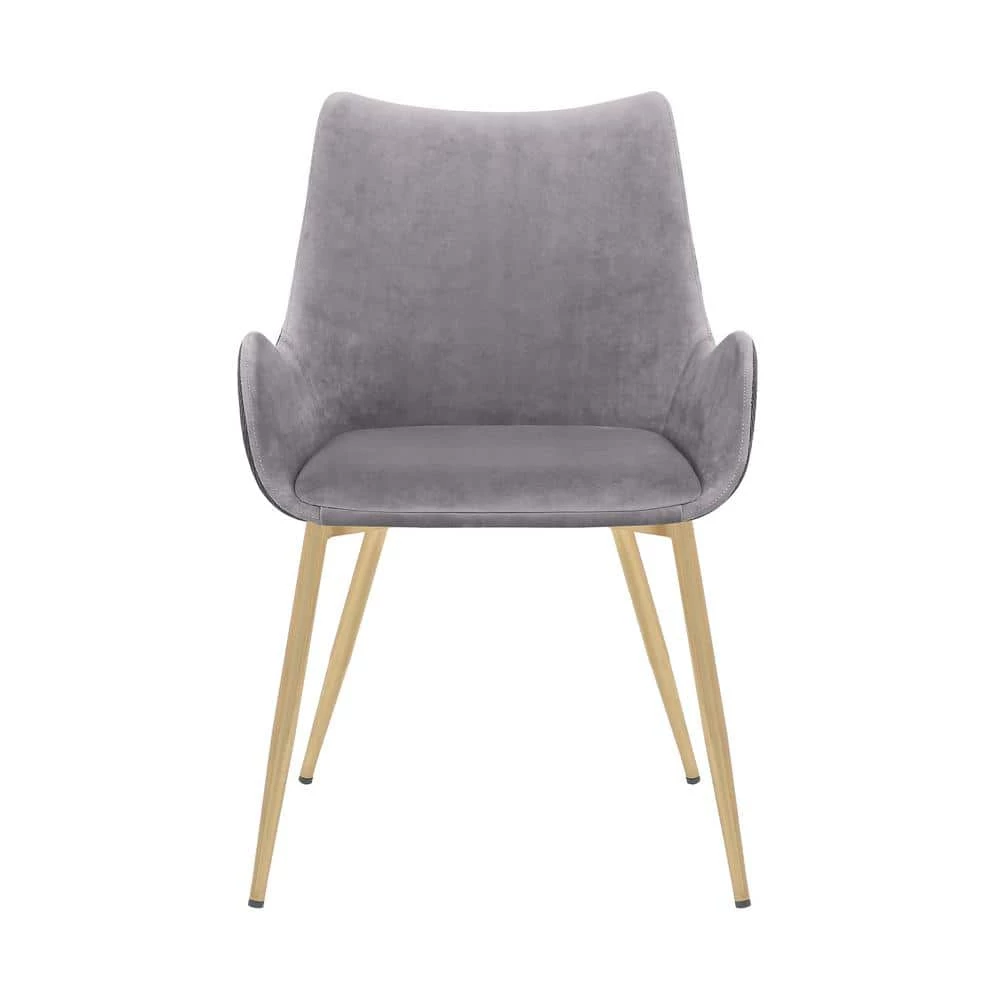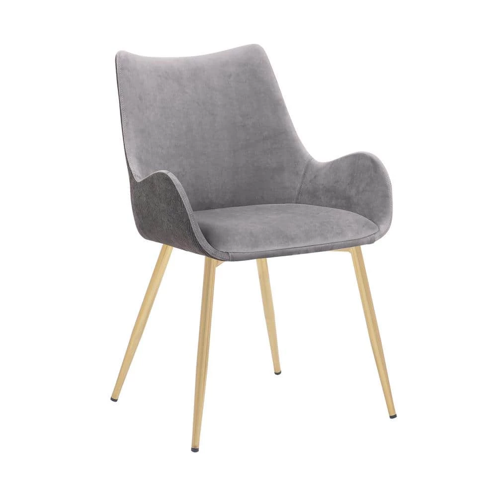 Add a touch of fashion forward glamour to your home with the Avery 2-Tone Grey Fabric Dining Room Chair with Gold Legs. The soft fabric upholstery covers a high-density foam cushion that provides comfort for long sitting periods but also features ergonomic properties to keep your back healthy and properly aligned. This chair can easily be used in your dining room or kitchen as a dining chair, your home office, bedroom, or living room as accent chairs. The gold metal legs give the chair a luxurious look and make this chair a truly stand out piece of furniture that will provide comfort and durability for many years to come. The Armen Living Avery Fabric Dining Room Chair with Gold Legs is available in your choice of Blue, Dark Grey, Pink, or Teal upholstery and each feature gold metal legs.