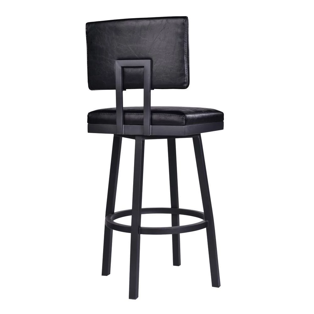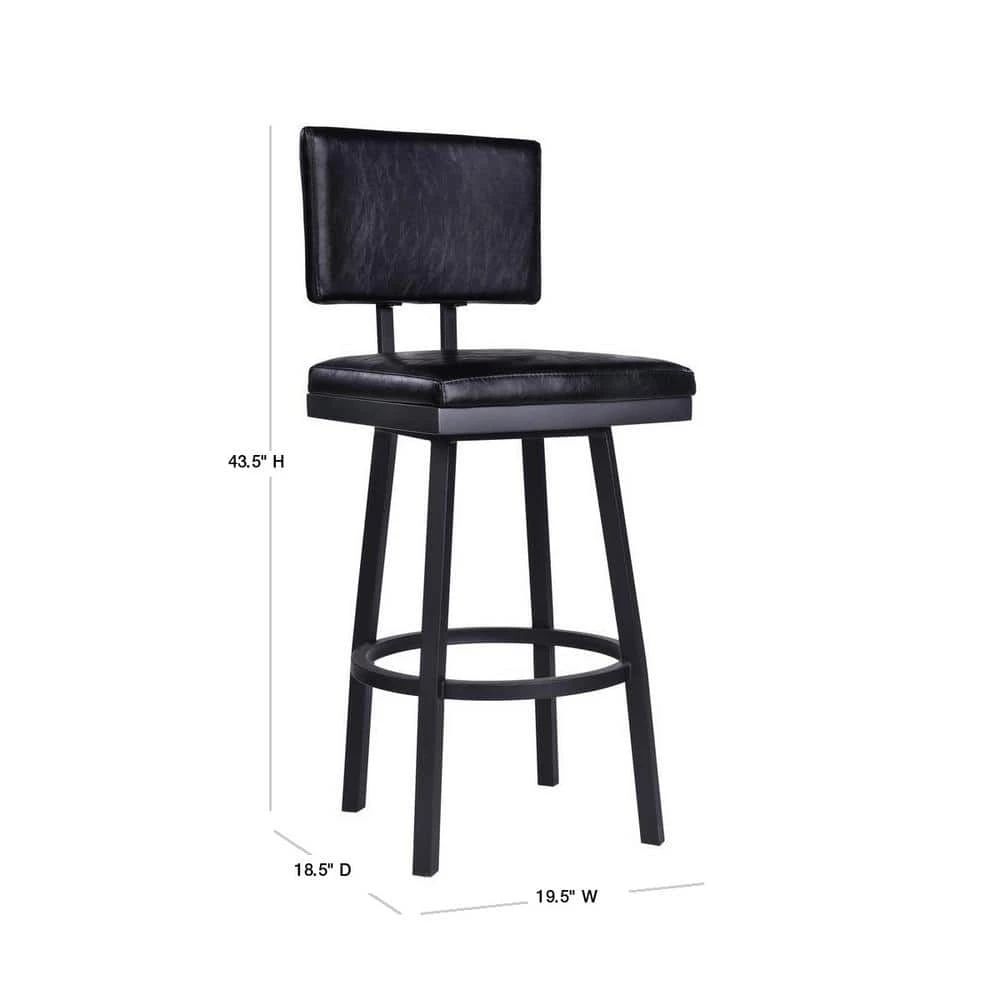 Ensure that your kitchen seating is taken care of with the help of the Armen Living Boseman Bar Stool. Featuring a modern style, this stool is a great choice for upgrading your decor. It features a low back for a more minimalist and sleek design. This stool has a swivel mechanism, so you can easily interact with other people in the room without having to move your chair. Upholstered in faux leather, it is ideal for providing a stylish touch to any room. Made from metal, the frame can tolerate frequent use, making it ideal for any kitchen or bar. This stool has a faux leather seat, which has a traditional style that is a great addition to any room. Designed in black, it will match with your other pieces of furniture. It has floor protectors, which ensure that surfaces are not damaged when you are moving the furniture. This stool features a foot rest, promoting correct sitting posture with its ergonomic design.