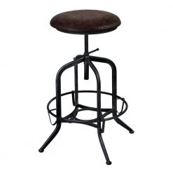 Elena 24-32 in. Brown Fabric and Industrial Gray Finish Adjustable Bar Stool by Armen Living