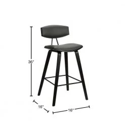Daxton 26 in. Counter Height High Back Grey Faux Leather and Walnut Wood Stool by Armen Living