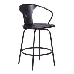 Pinellas Modern Black Faux Leather and Brushed Stainless Steel Bar and Counter Stool by Armen Living