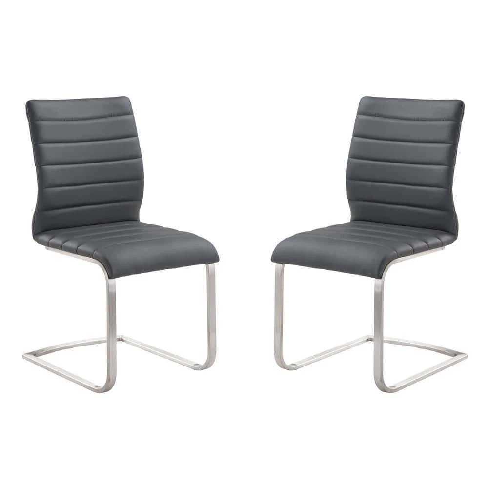 The Armen Living Barin contemporary dining chair is sure to be a standout in any modern household. The exquisite combination of brushed stainless steel and plush faux leather upholstery makes this chair both comfortable and dependable. The curved legs add a unique spin on the traditional dining chair design while the back and seat add an unmatched degree of luxury. The Barin dining chair can be paired with the complementary Barin dining table. The Barin dining chairs are available in white and gray leatherette.