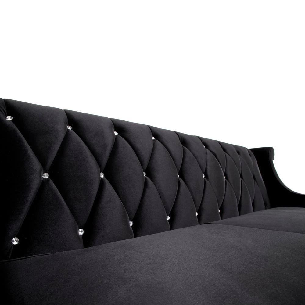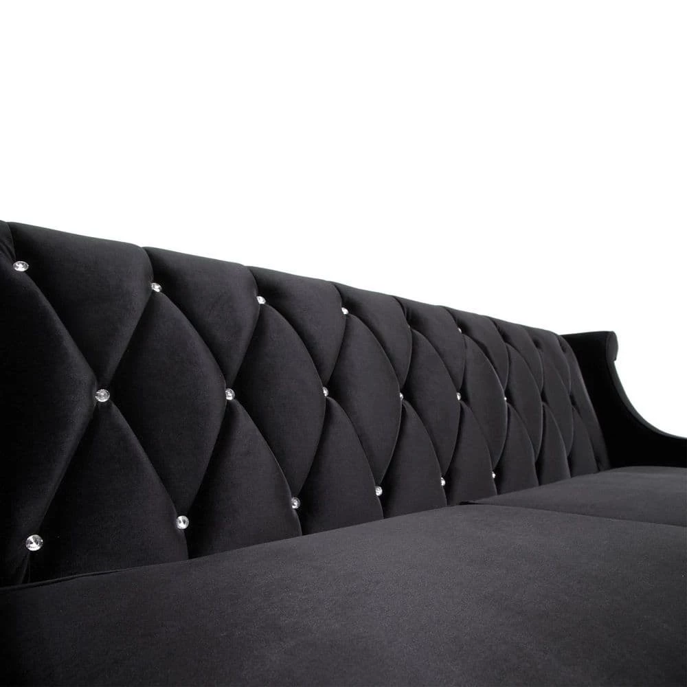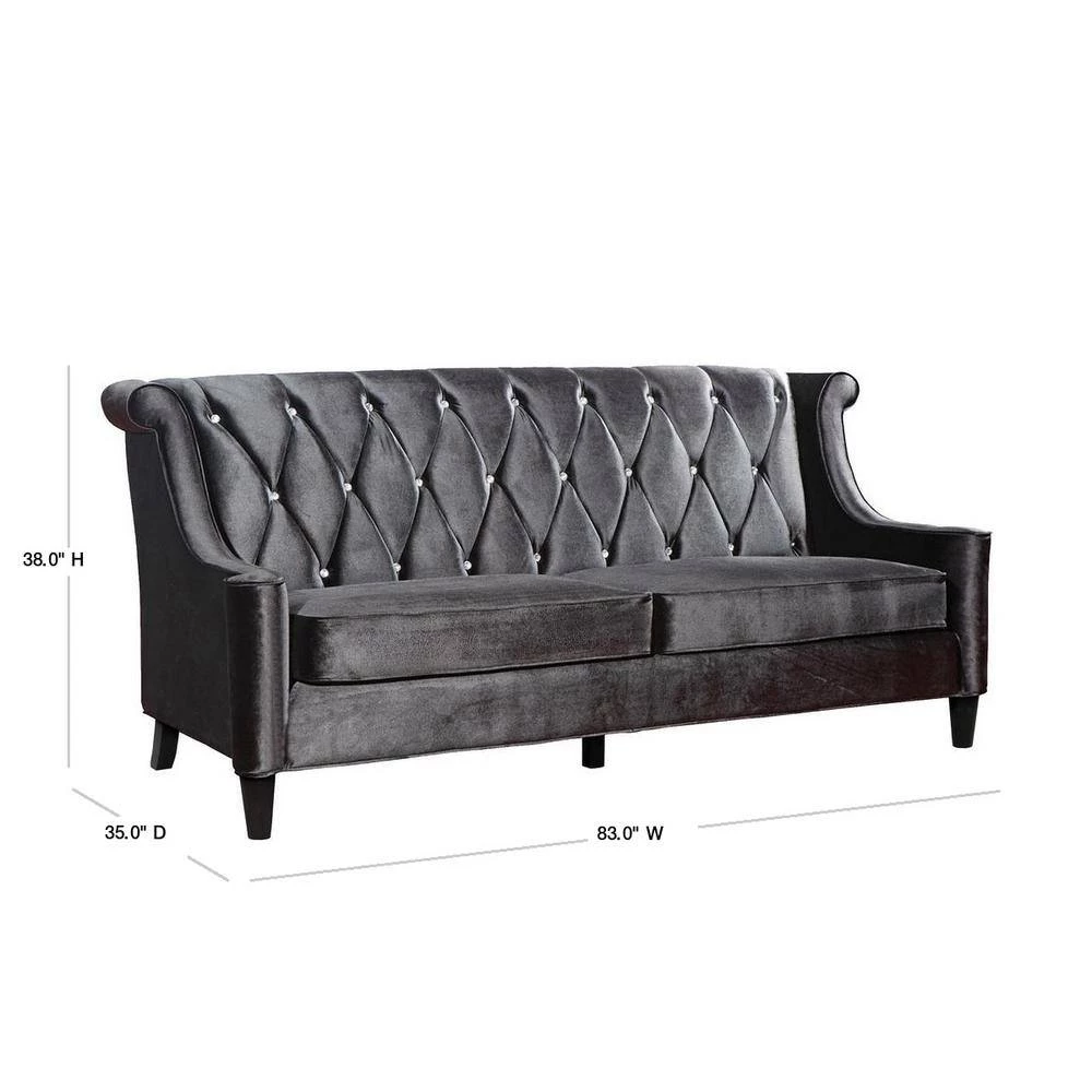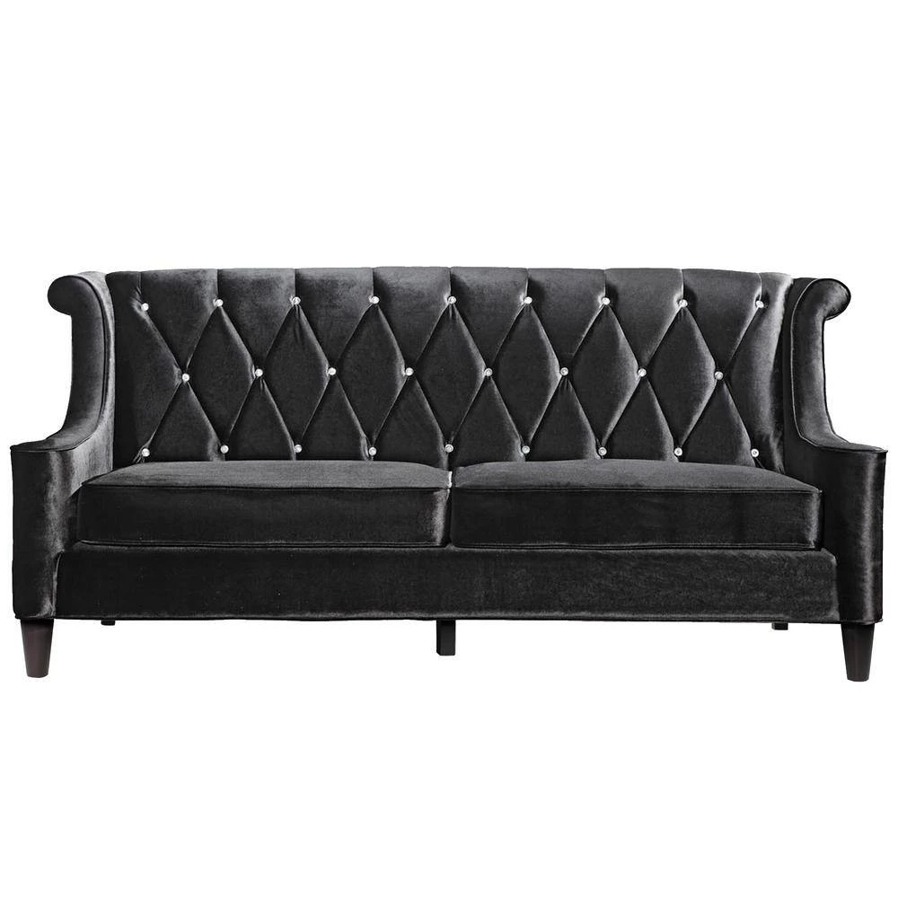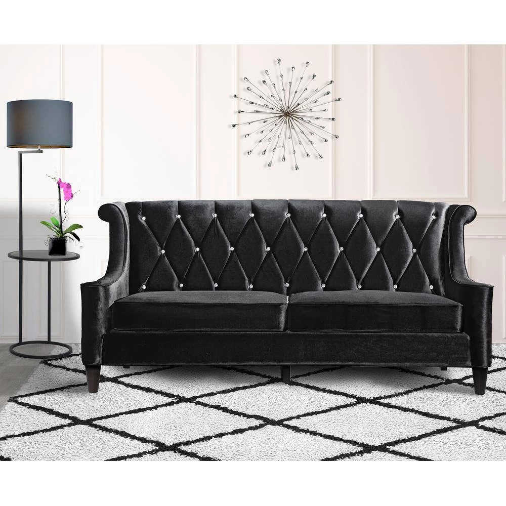 The Armen Living barrister contemporary sofa is an ideal addition to the modern living room or lounge. This exceptionally stylish transitional sofa features a velvet upholstered wooden frame and black wooden legs. Crystal button tufted for extra aesthetic appeal, the barrister is a definite standout. Pair the barrister sofa with the barrister accent chair and loveseat for added aesthetic cohesion. This elegant sofa is available in a variaty of color choices, namely: black, blue, caramel, gray, green, and purple.