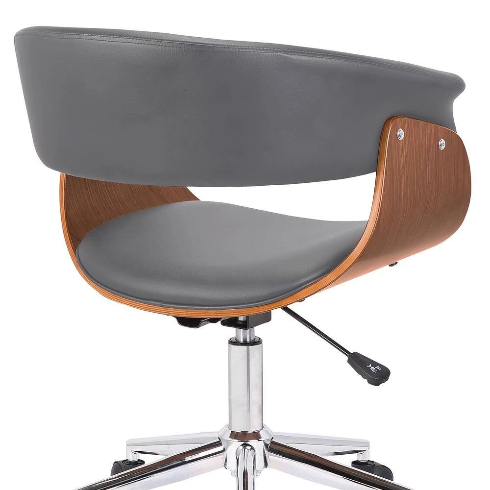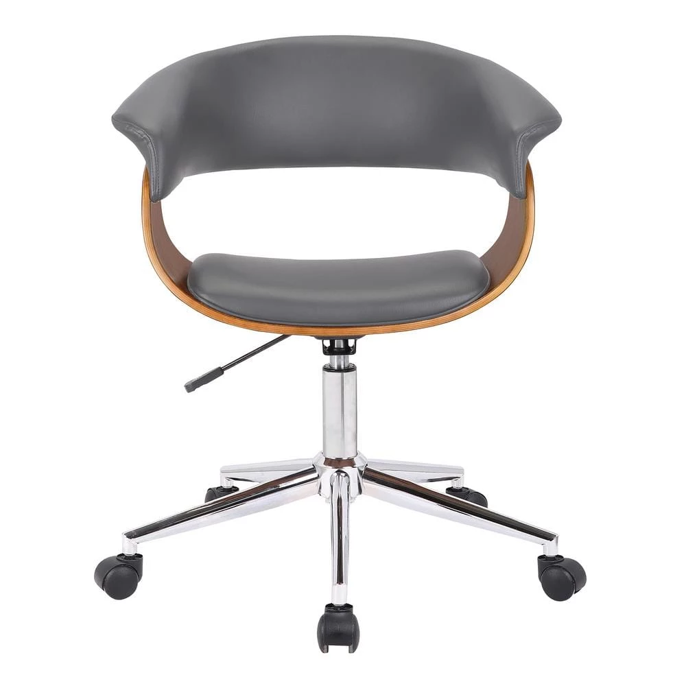 The Armen Living Bellevue mid-century office chair is a perfect addition to the contemporary office. The Bellevue’s chrome finished column is beautifully accented by its sturdy walnut wood frame and stylish faux leather upholstery. Not just an exceptionally comfortable chair, the Bellevue also features a 360-degree swivel function and casters for ease of mobility. This piece is unique and catching that can dress up any room in your home. The medium-high cushion open back is ideal for posture alignment and an unmatched support for days on end. The delicate curve of this design will soften any features in your home whether it is in a large open space or compact area. The foundation of the product is supported by solid chrome for a sturdy and stylish aesthetic without comprising the practicality and functionality of this item. This item is a versatile piece that can be ideal for a home office, also great as a task and desk chair, or even a commercial setting. This mid-century and modern design mix adds a unique style to your office and breaks the rules of typical office seating. Design for mobility, ease, and comfort, the stylish Bellevue is available in your choice of grey or black faux leather. We stand by the quality, the craftsmanship, and the integrity of our product by offering a 1-year warranty for all our products. We want our customers to enjoy our product and we will always be there to help with our top-notch customer service support.