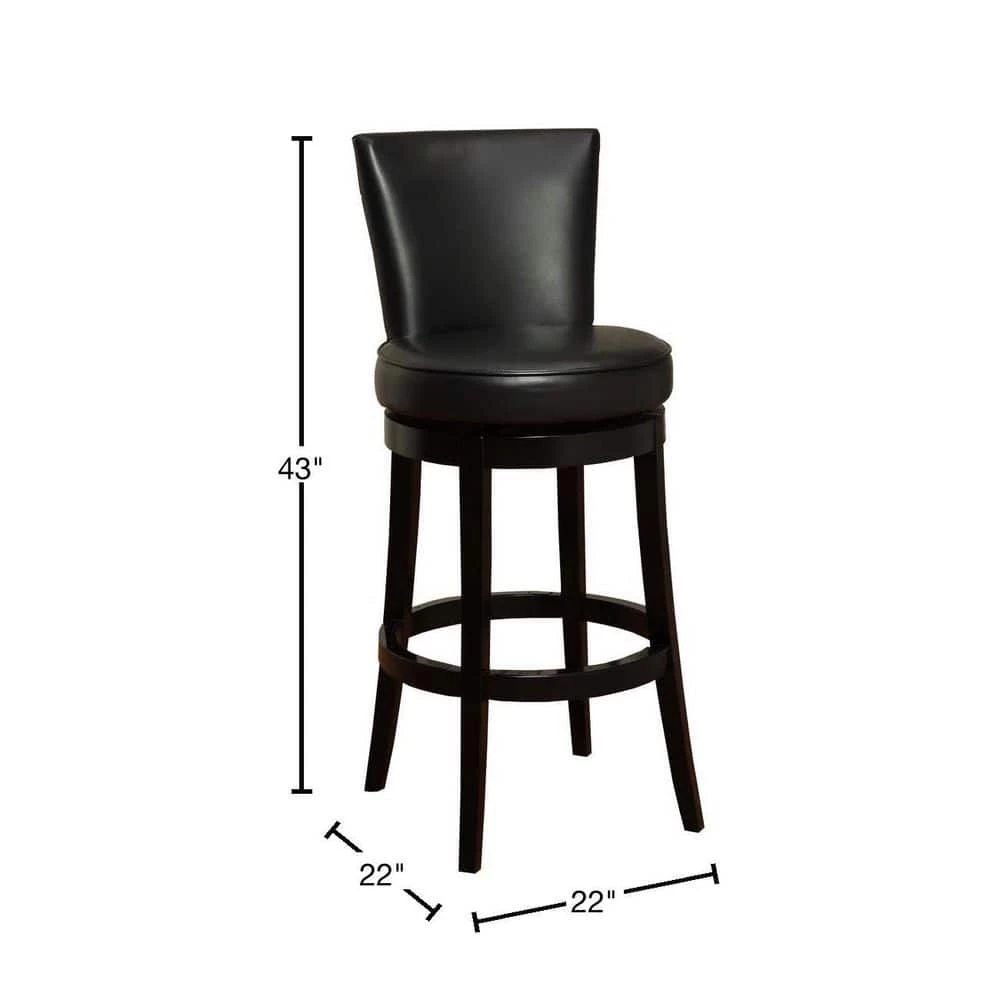 The Armen Living Boston contemporary swivel Bar Stool is a beautiful addition to any modern household. The sturdy black wood frame of this stylish Bar Stool is brilliantly accented by the plush bonded leather upholstered seat and back. The novel beauty of the Boston is further enhanced by the nail head accents on the back of the Bar Stool. The 360° swivel function adds mobility to the Boston. The Boston’s bonded leather upholstery comes in two colors; black and red. Both colors are available in your choice of 26 in. counter and 30 in. bar height, ideal for the standard kitchen or bar counter.