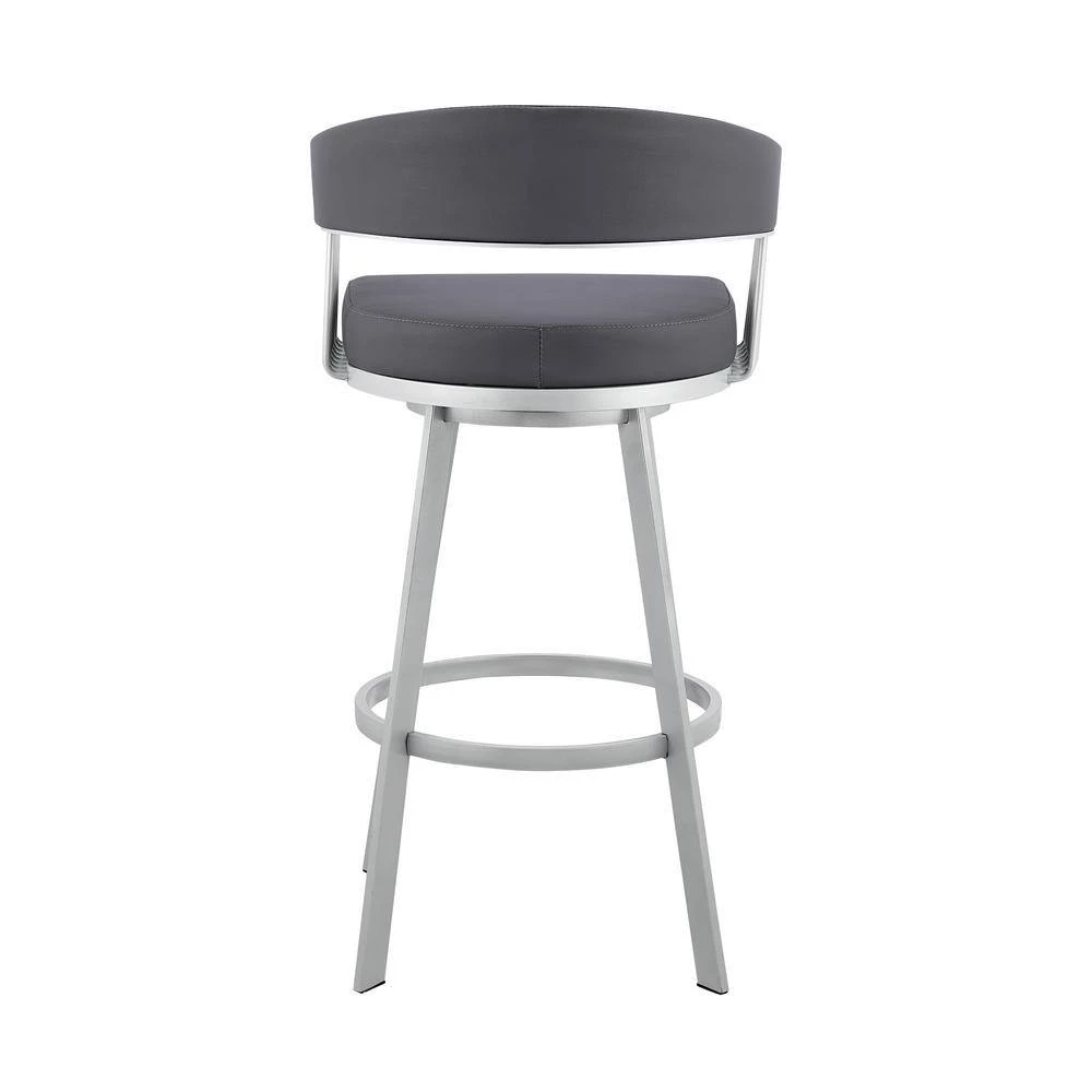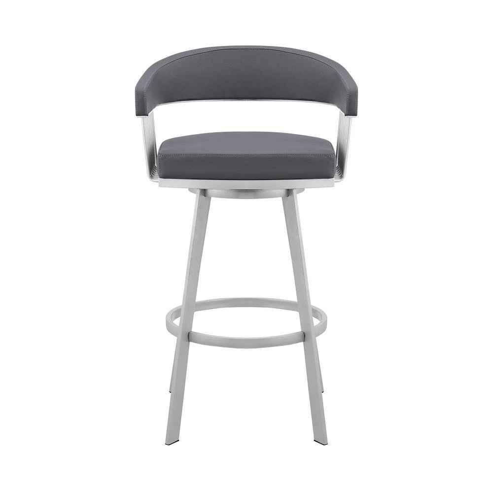 Bring the Bronson Swivel Bar Stool from Armen Living into your beautiful home. It is the best choice to bring in another seating option and does so without compromising on comfortability. The wonderful faux leather and metal accents give the Bronson a look of refinement, making you proud to show it off in your home. The high-density foam-padded seat cushion offers you the most comfort available to you. This curved open-back stool will keep you relaxed while enjoying dinner with your friends and family. The Bronson also features a convenient metal footrest, for additional support and stability as well as 360-swivel capability. The Bronson comes in a variety of color and finishes; black, gray, and white faux leather with brushed stainless-steel finish, black or vintage gray faux leather with black finish, chocolate faux leather and java finish, and white or grey faux leather with silver finish. All color options are available in your choice of 25 in. counter height and 29 in. bar height, and the Bronson can support up to 250 lbs. per stool.