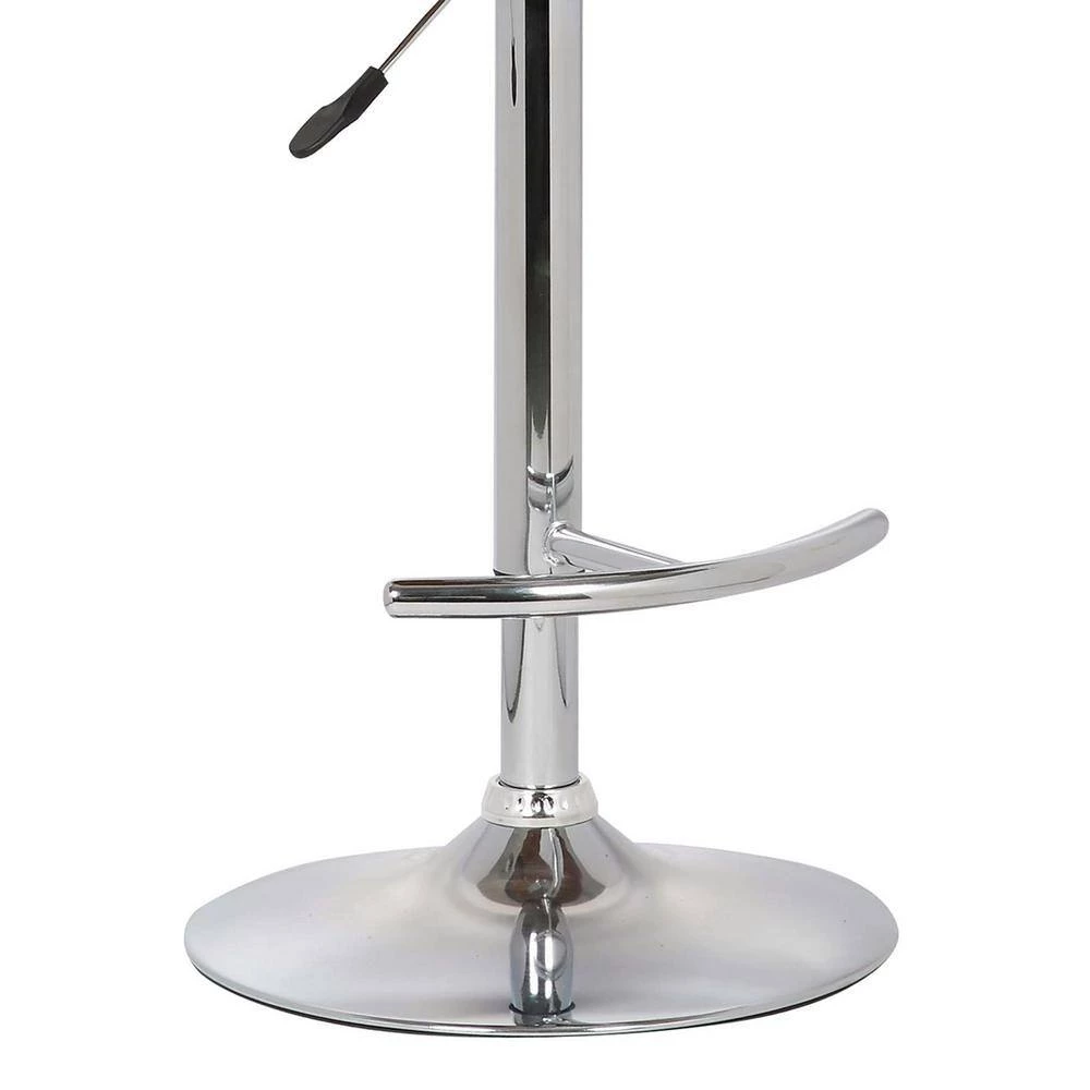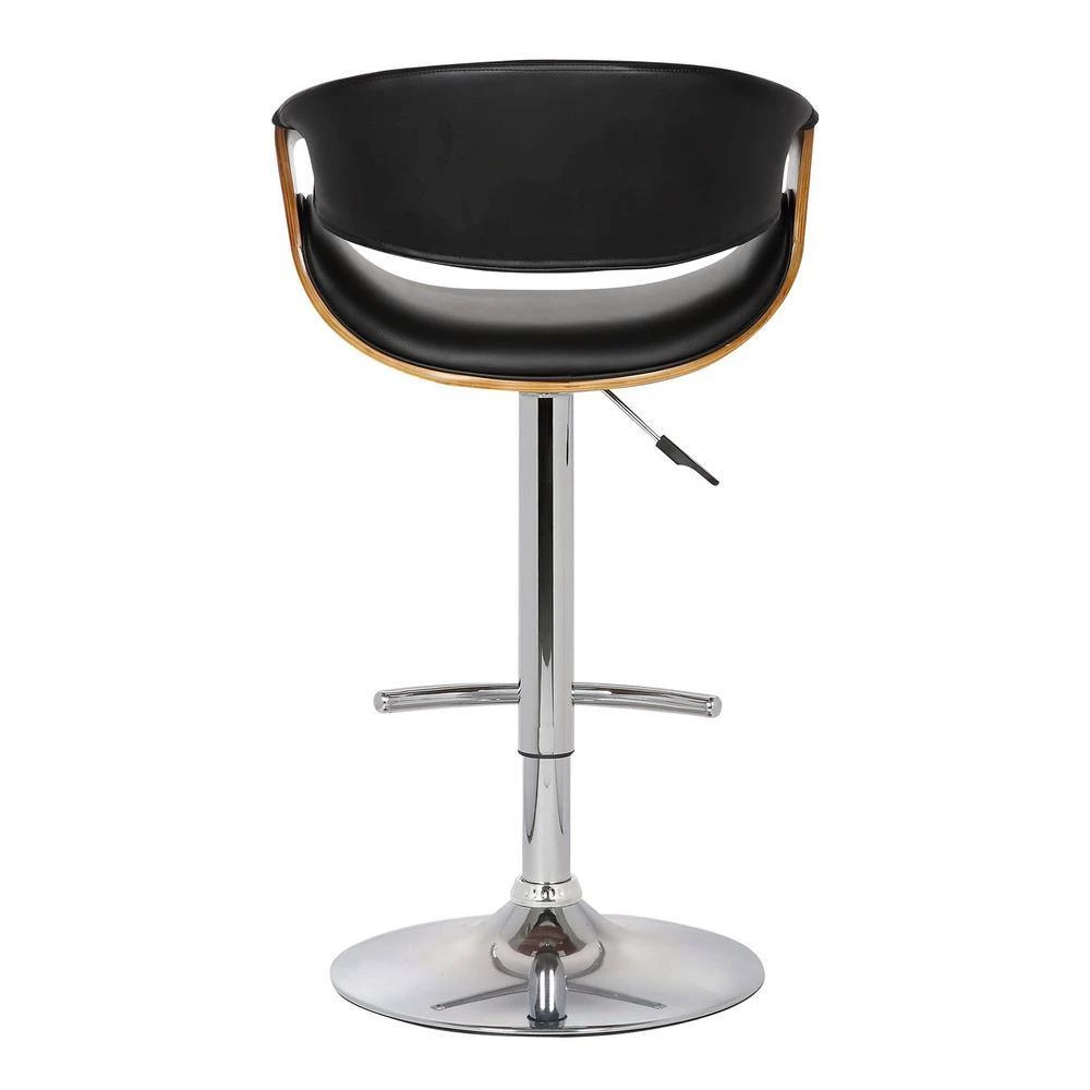 Adorn your modern kitchen and bar design with our Armen Living Butterfly adjustable contemporary Bar Stool. It’s the perfect Bar Stool to use at your kitchen island or in your home bar. The seat swivels 360, allowing guests to easily interact with one another without moving. Featuring a chrome footrest, base and stem and walnut wood and Faux Leather upholstered seat, this adjustable height modern Bar Stool matches a neutral color scheme. Available in Black or Gray Faux Leather upholstery.