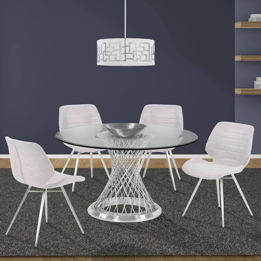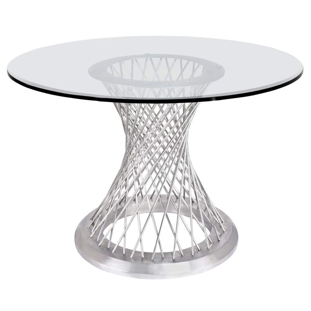 - Calypso Contemporary Round Dining Table in Brushed Stainless Steel