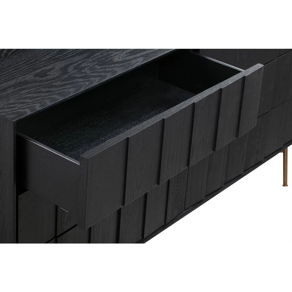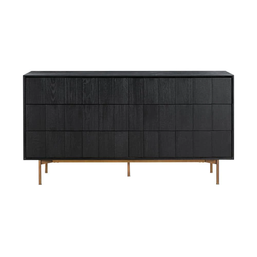 Add style and convenience to your bedroom with our Carnaby 6-drawer dresser in black brushed oak. Each piece is cut and layered to create an artistic relief along the facade. Featuring a sophisticated brushed black finish, the dresser gracefully displays the rich organic grains of Oak. This dresser serves as an ideal organizer with it’s 6 deep drawers. It rests upon slender metallic legs to deliver a modern and sleek profile. Making a chic statement, our dresser includes six roomy, touch to open drawers. The Carnaby is great for use in your bedroom as a traditional dresser, its universal beauty allows it to transition to any room. Oak is a highly durable hardwood used for thousands of years. It has a unique grain pattern derived from the rings of the oak tree. It contains high levels of tannins, allowing the wood to resist insects, mould, and fungus naturally. This dresser can be used to maximize storage at an entry way, in a home office, or used in a dining room as an all-drawer sideboard buffet. The ample storage is perfect for organizing all your clothes and linens in a closet, bedroom, or nursery.