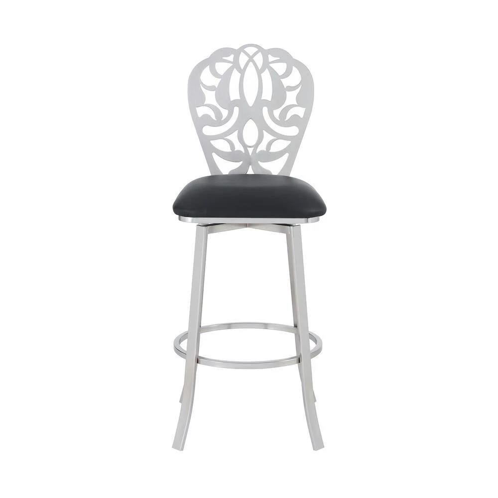 The Armen Living Cherie contemporary counter height barstool features an attractive, yet adaptable aesthetic frame design. A wonderful choice for both the kitchen and the home bar setting, the Cherie comes with a 360° swivel seat that allows for a wide range of movement and easy socialization. The Cherie’s Stainless Steel finish frame assures an unmatched degree of durability while complimenting contemporary design sentiments. Padded with foam, the Cherie’s Black Faux Leather upholstered seat offers exceptional support that is further enhanced by the stool’s added footrest. An excellent choice for any modern home, the Cherie is sold with your choice of 2-industry-standard sizes; 26 in. counter and 30 in. bar height We stand by the quality, the craftsmanship, and the integrity of our product by offering a 1-year warranty for all our products. We want our customers to enjoy our product and we will always be there to help with our top-notch customer service support.