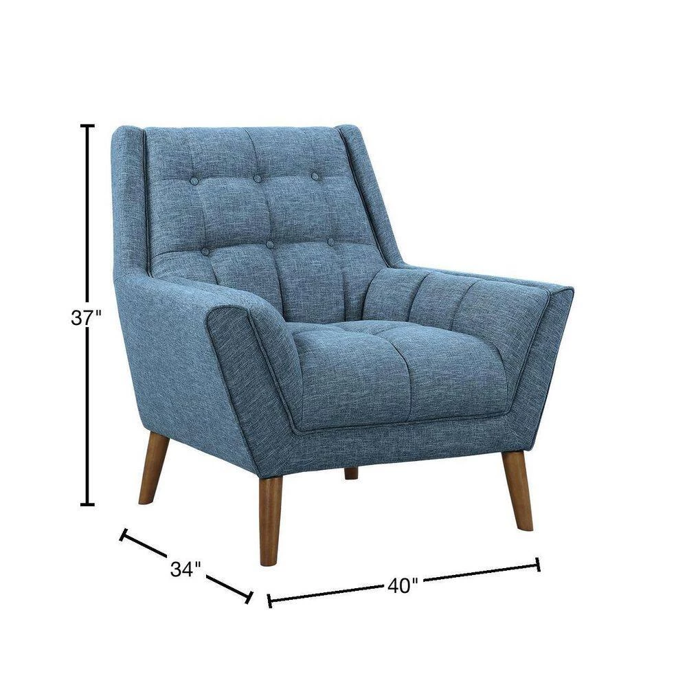 Cobra Blue Linen and Walnut Legs Mid-Century Modern Accent Chair by Armen Living