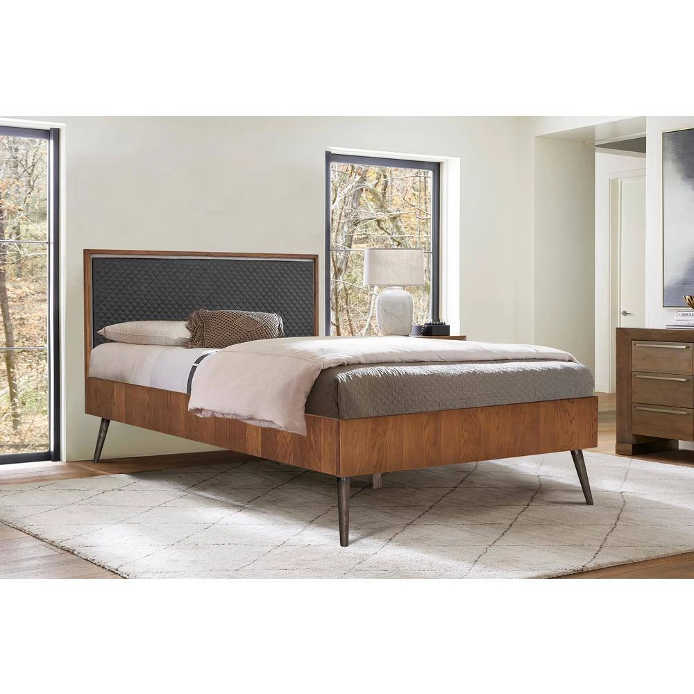 Give your bedroom a major style upgrade with this Armen Living Coco Upholstered Platform Bed. The upholstery features a diamond stitch pattern tufting for a classic but modern look. As a bonus, the included wooden slats offer a reliable foundation for your mattress without needing a box spring. The foundation of the bed is made from solid oak, metal with upholstered headboard in real black leather. The footboard features rustic wood grain look that lends itself to any transitional style home. The Coco Upholstered Platform Bed are available in black with wood accent in size King or Queen.