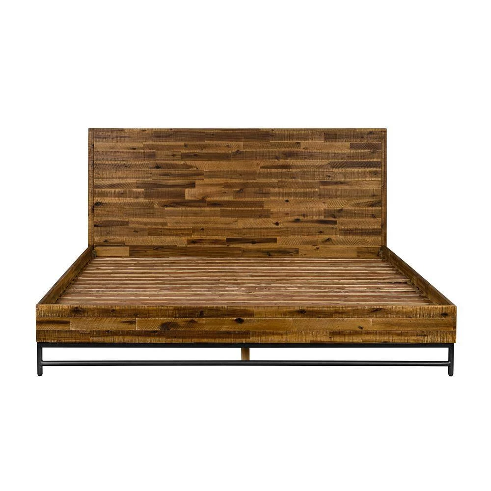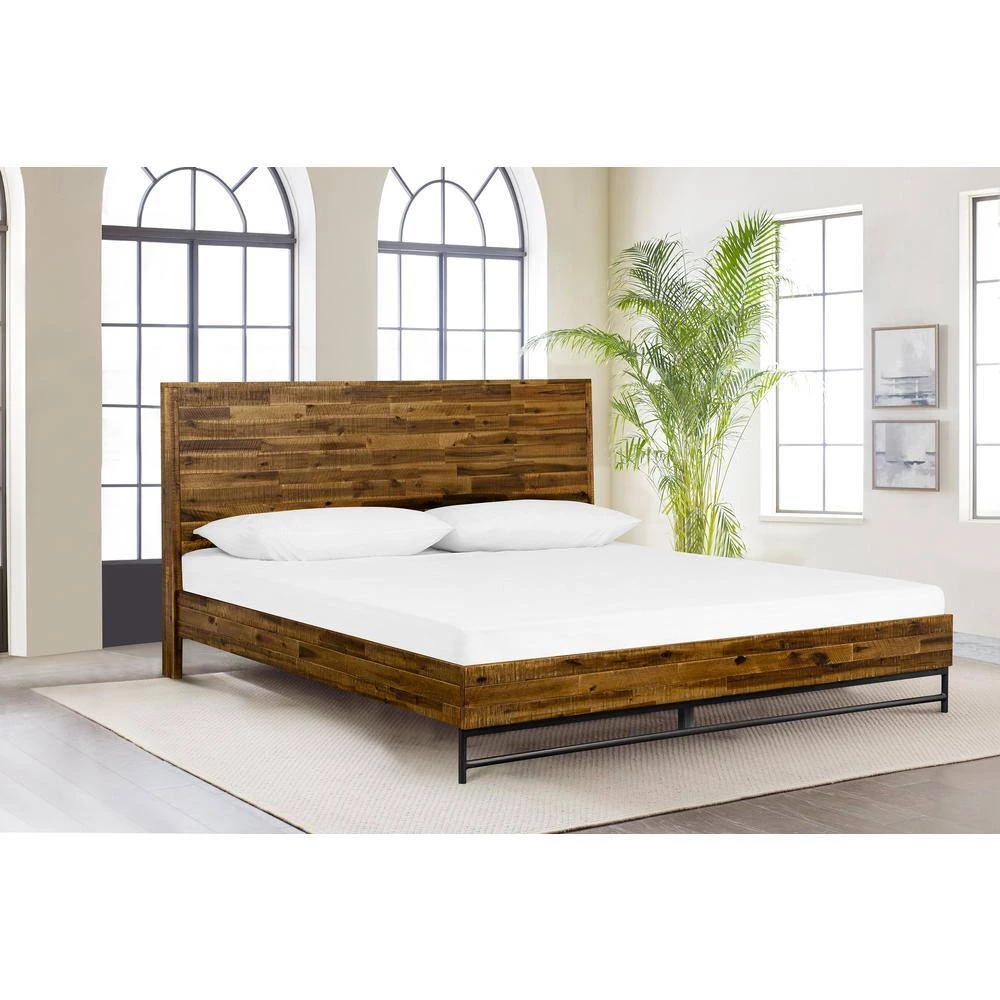 The Armen Living Cusco Rustic Acacia Platform King Bed gives your bedroom or guest room a rustic cozy quality with its antique acacia finish. 7 inches of ground clearance make this bed is ideal for animal lovers whose pets could benefit from the easy access. Box springs are not required. The Cusco collection expands to multiple rooms in your home. Coordinating bedroom, living room and dining room pieces not included. All available in an antique acacia finish with black metal accents.