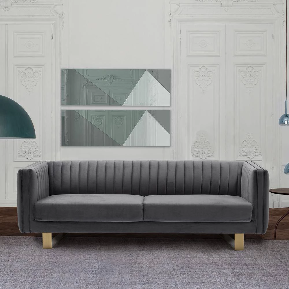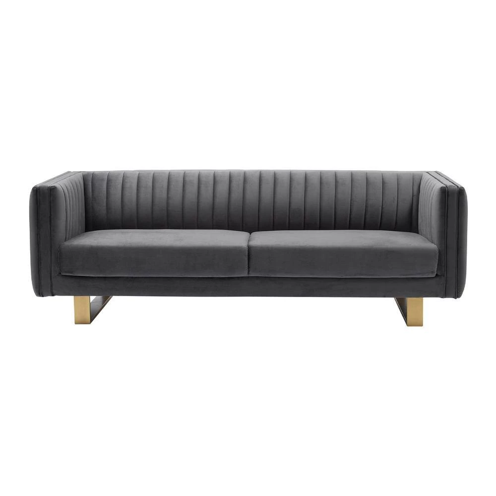 The Armen Living Delilah Dark gray Velvet Sofa with Matte Gold Legs offers your home a centerpiece of exceptional design. Our three-seater sofa brings your living room a stunning look with its deep channel stitching, velvet upholstery, and squared arms. Finished with a low-profile design, this sofa stands as a streamlined statement piece that can change the whole flow of your interior decor, creating an open, clean space. From its cozy design to its chic matte gold legs, our sofa will bring excellent comfort and style to any room. We stand by the quality, the craftsmanship, and the integrity of our product by offering a 1-year warranty for all our products. We want our customers to enjoy our product and we will always be there to help with our top-notch customer service support.