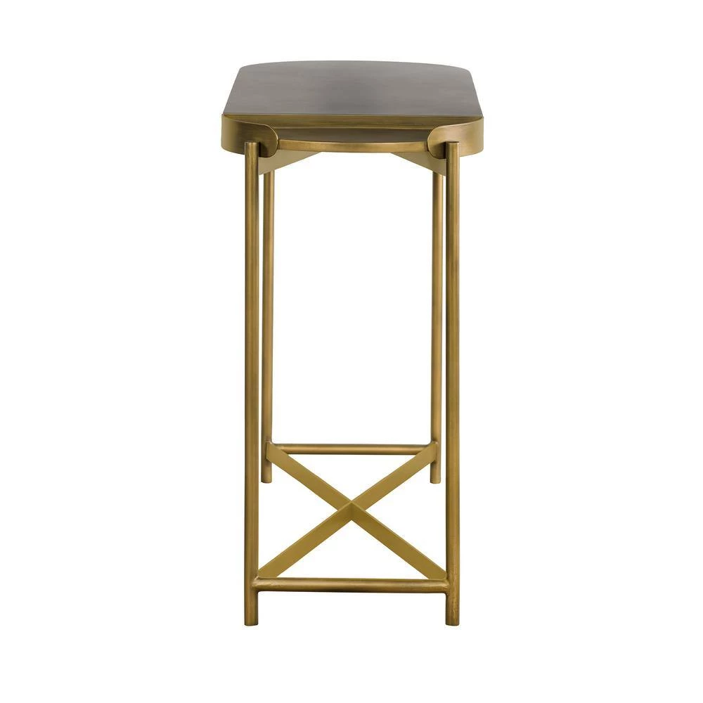 Accent your home with the Armen Living Dua Console Table. This beautiful narrow rectangular console table featured an X-shape base with antique gold finish and a concrete top, the slim silhouette exudes transitional styling cues with a hint of glam inspiration. Organization and decoration come together with this skinny console table, place in the entryway for a functional key hub, behind the sofa in the living room, or in any open concept living space.