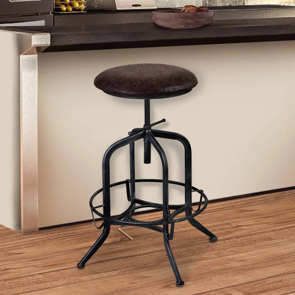 Our Elena barstool is the perfect mix of comfort and style to make your bar look, and feel, good. It’s easy to use adjustable handle allows you to change the height to exactly where you need it to be. Made from high quality metal and fabric, this brown barstool is sculpted with care and will fit in with most any style room, whether it is in your kitchen or at your home bar. It mimics the highly admired esthetics of the late 19th and early 20thcentury industrial factory draftsman or office drafting furniture. The curved metal legs accent the comfortable, fabric covered seat that allows you to sit comfortably for as long as you want. The round seat paired with the rounded metal frame gives this barstool just the look you need for your home. This piece provides both style and function with eye-catching industrial metal base that can easily be integrated into your homes existing decor. This product ships in one box and fully assembled. We stand by the quality, the craftsmanship and the integrity of our product by offer 1-year warranty for all our products. We want our customers enjoy our product and we will always be there to help with our top-notch customer service support. Excellent choice for a Contemporary, Industrial, and even Traditional Dining and Kitchen setting.