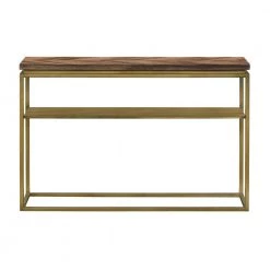 Faye Rustic Brown Wood Console Table with Shelf and Antique Brass Metal Base by Armen Living