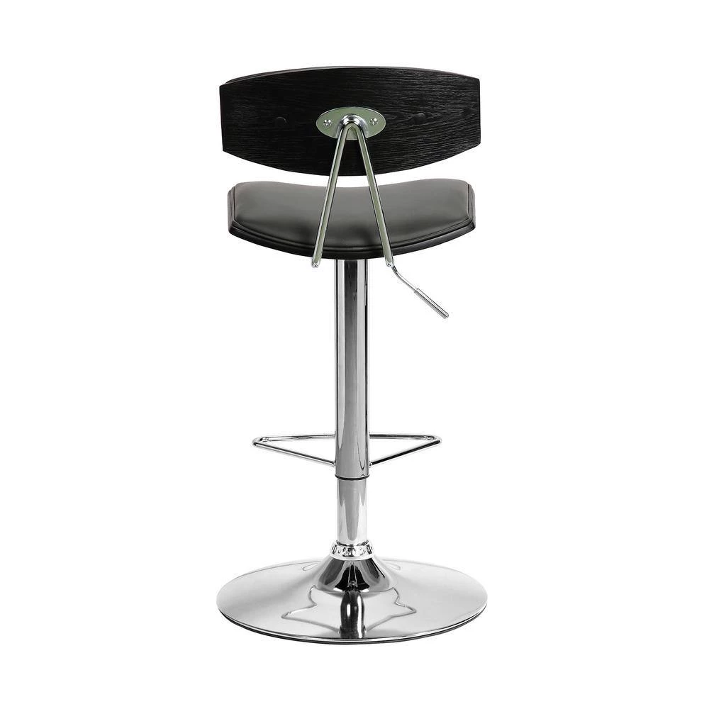 Chic and sleek, the Armen Living Erik Bar Stool perfectly embodies mid-century modern design. Upholstered in faux leather, this Bar Stool showcases an adjustable polished chrome base for a gorgeous, sophisticated look. The Armen Living Erik Bar Stool is available in your choice of brown faux leather with walnut wood accents or grey faux leather with black brushed wood accents and adjust between 34.5″ and 42.5″.