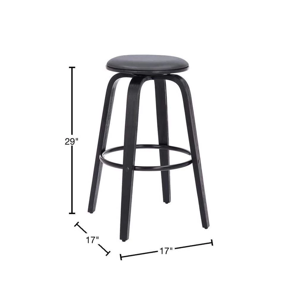 The Armen Living Harbor 30″ Backless Swivel Grey Faux Leather and Black Wood Bar Stool is the perfect fit for your kitchen, home bar, or craft room! The Harbor features a full 360-degree swivel function that allows full mobility where you to interact with your guests and family regardless of your position in the room! The foundation of the product is supported by solid wood with convenient chrome footrest for a sturdy and stylish aesthetic without comprising practicality and functionality of this item. The plush padded seat with high density foam will provide you with all day comfort. Though an excellent fit for the kitchen or bar, the harbor’s novel yet practical style makes it great for enhancing the aesthetics of your home. The Harbor is available in your choice of a Walnut Wood finish with Brown or Cream faux leather upholstery or a Black Finish with Grey faux leather upholstery and a 26″ or 30″ seat height. We stand by the quality, the craftsmanship, and the integrity of our product by offering a 1-year warranty for all our products. We want our customers to enjoy our product and we will always be there to help with our top-notch customer service support.