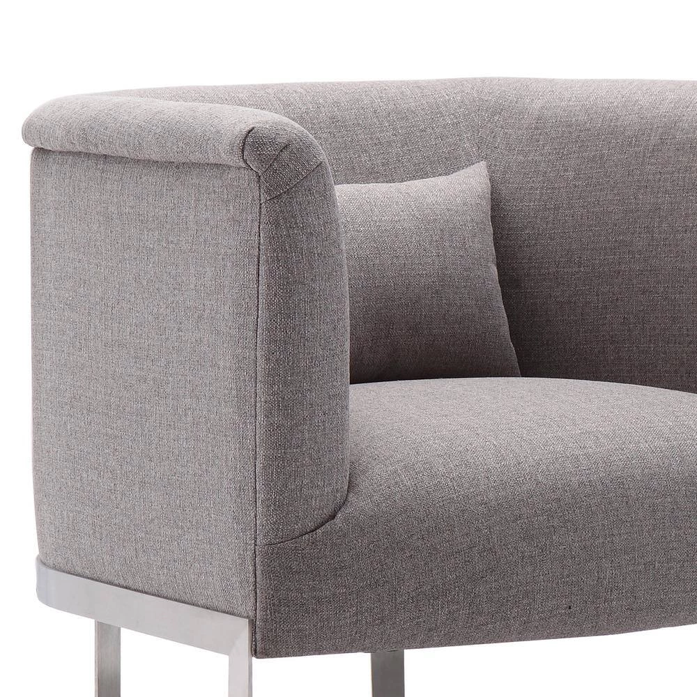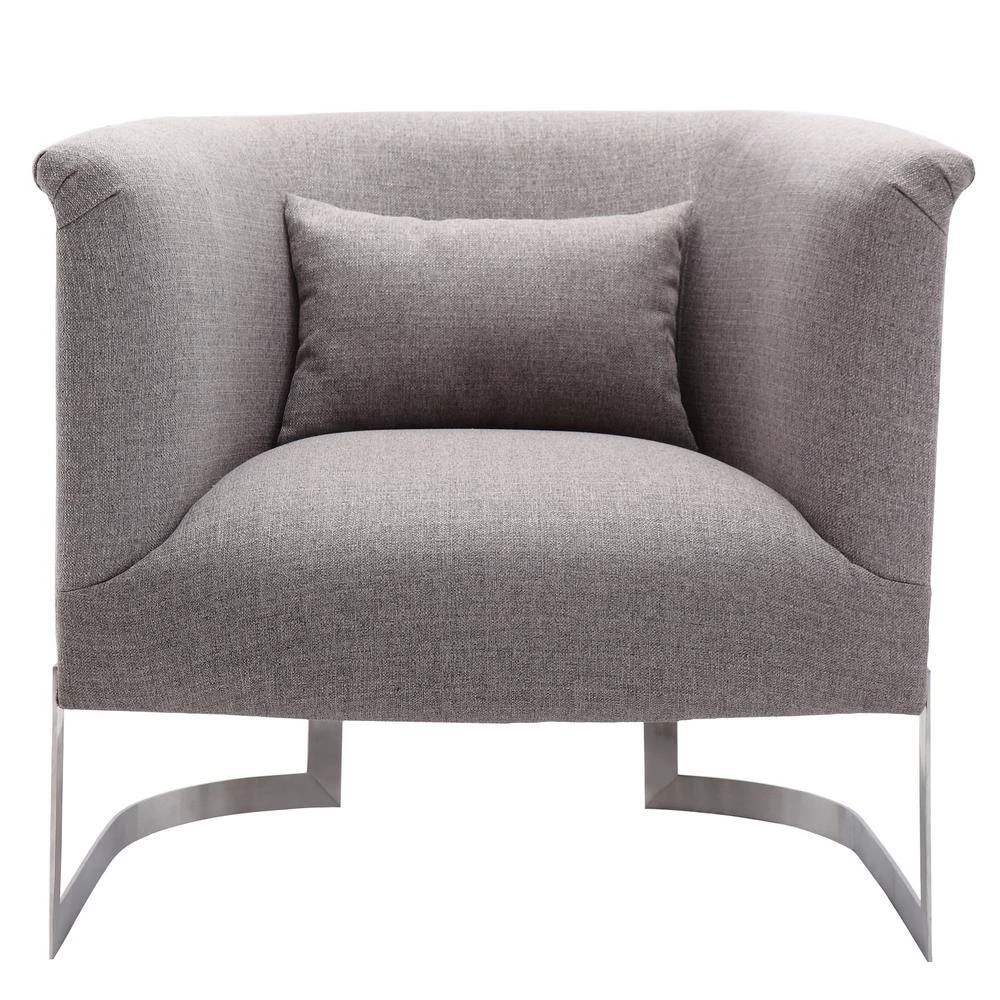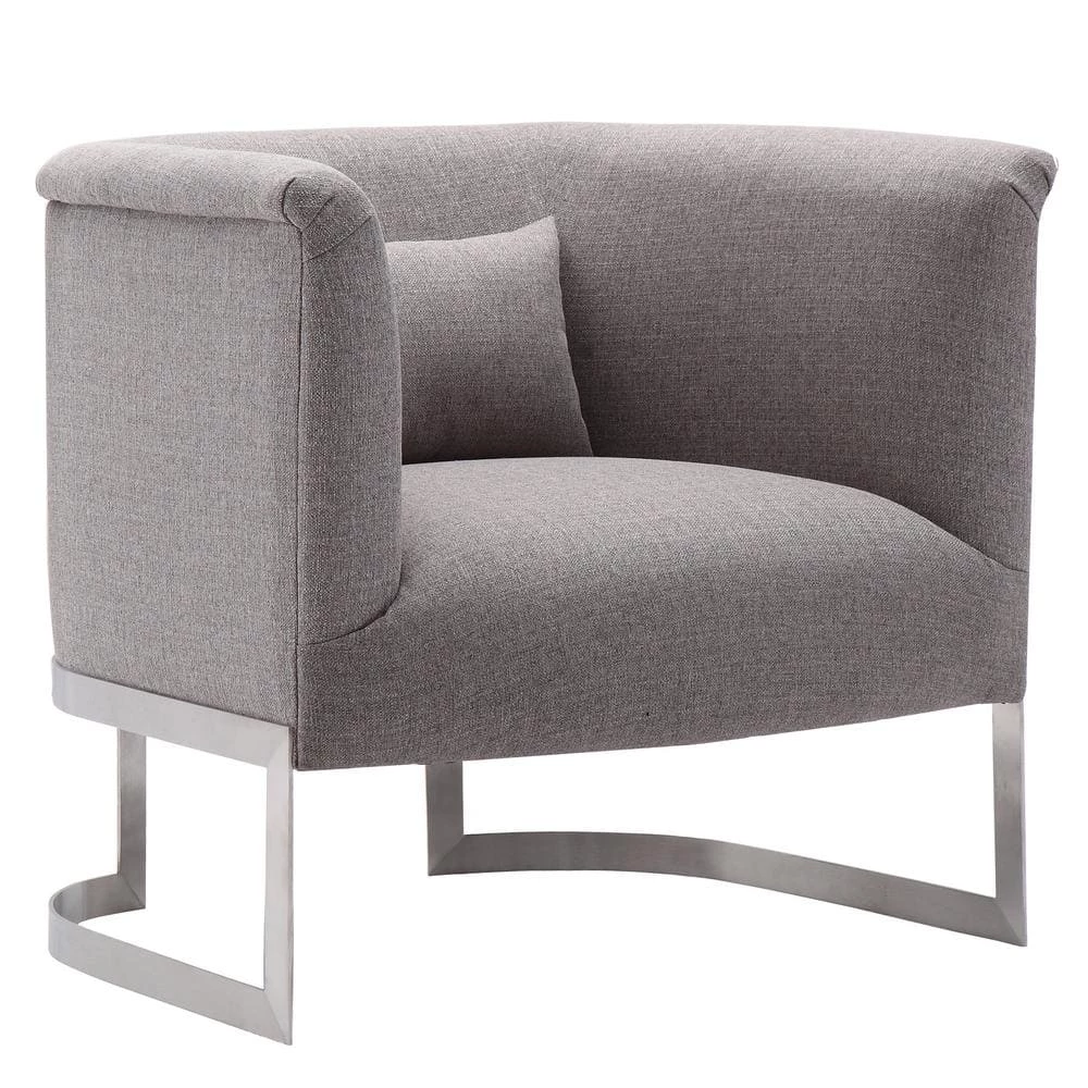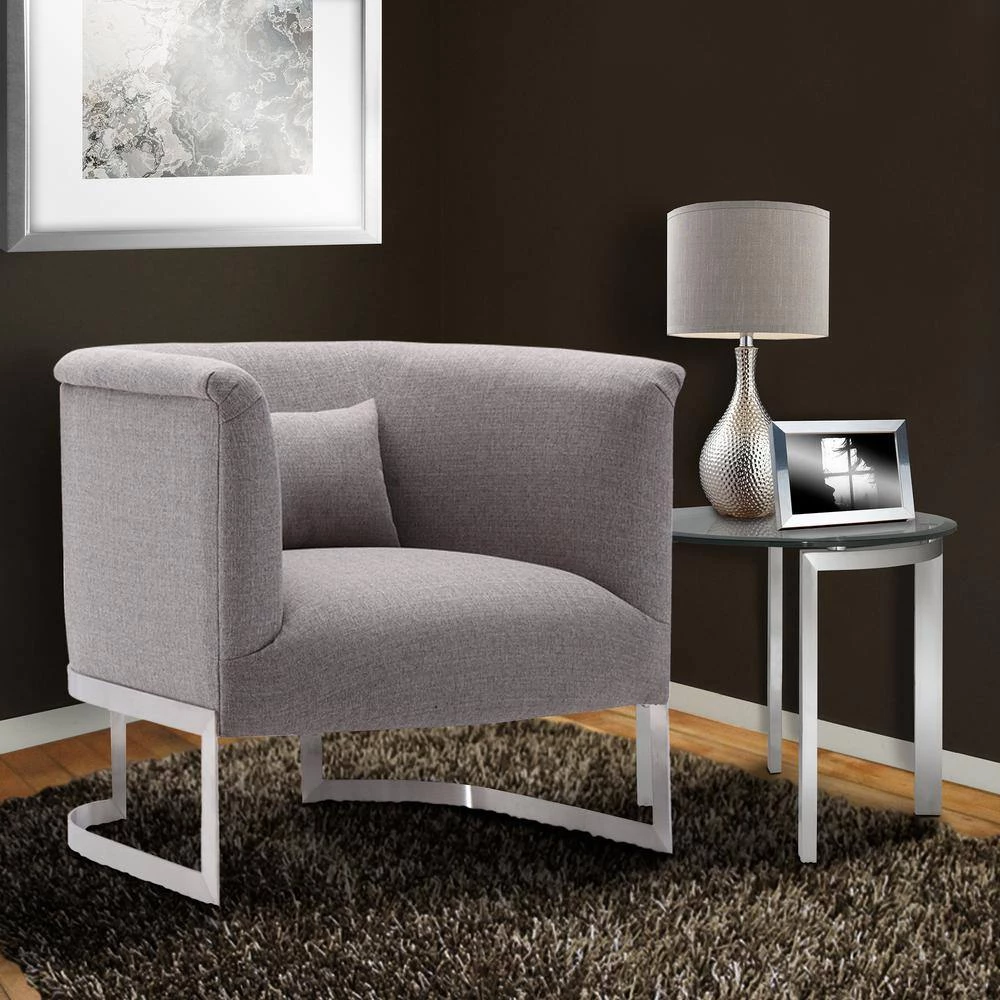 The Holtz accent chair has a great design and a shape that enables total relaxation, it can set off the decor of nearly any room. Fresh and bright, this soft and delicate piece is definitely what you need for a modern and contemporary lifestyle. Add a touch of classic modernity to your lounge, living room or bedroom with this accent chair. This chair features Brushed stainless Steel finish with Gray fabric.