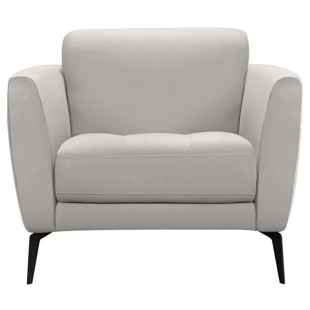 The Armen Living Hope contemporary genuine leather sofa chair is an exceptional choice for enhancing the modern living room aesthetic. The Hopes highly resilient foam and Dacron fiber padding perfectly support the plush genuine cowhide leather upholstery, assuring that the upholstery will not wrinkle or crack through prolonged use. Featuring a tufted cushion seat and accented by elegant black metal legs, the Hope chair is the result of combining the utmost degree of comfort with fashion forward design. For a cohesive home decor experience, consider pairing the Hope chair with the Hope loveseat and sofa. The Hope sofa chair is available in elegant grey genuine leather.