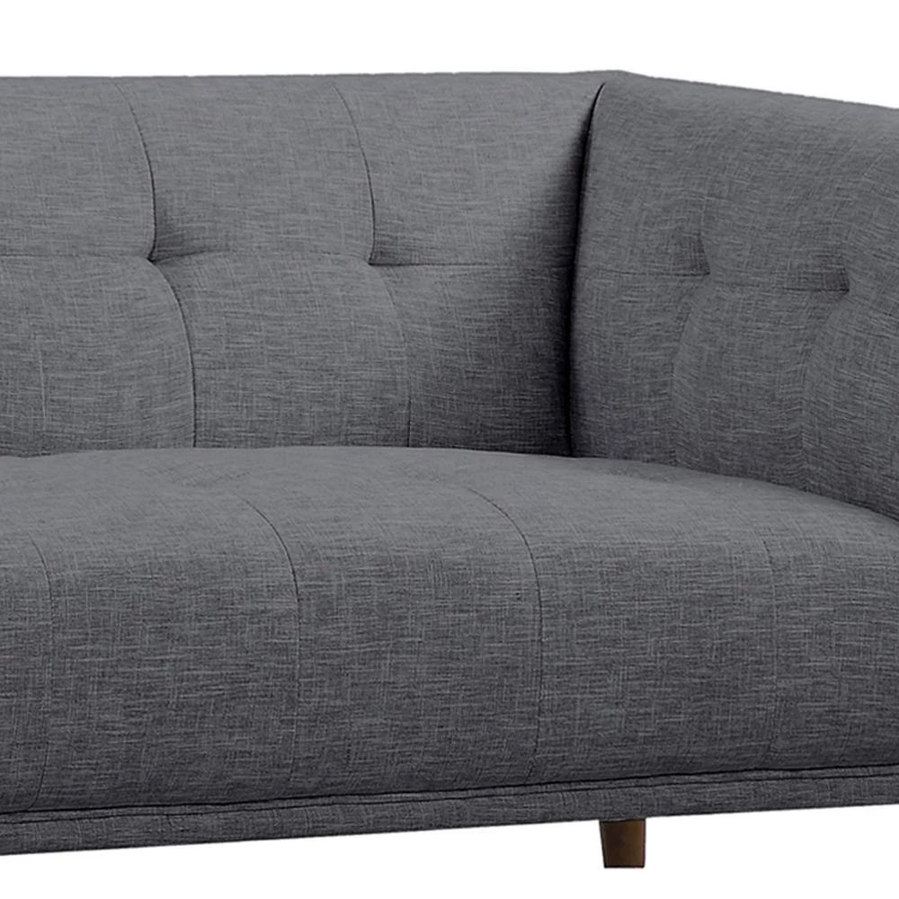 - Dark gray or beige linen fabric upholstery with button tufted back