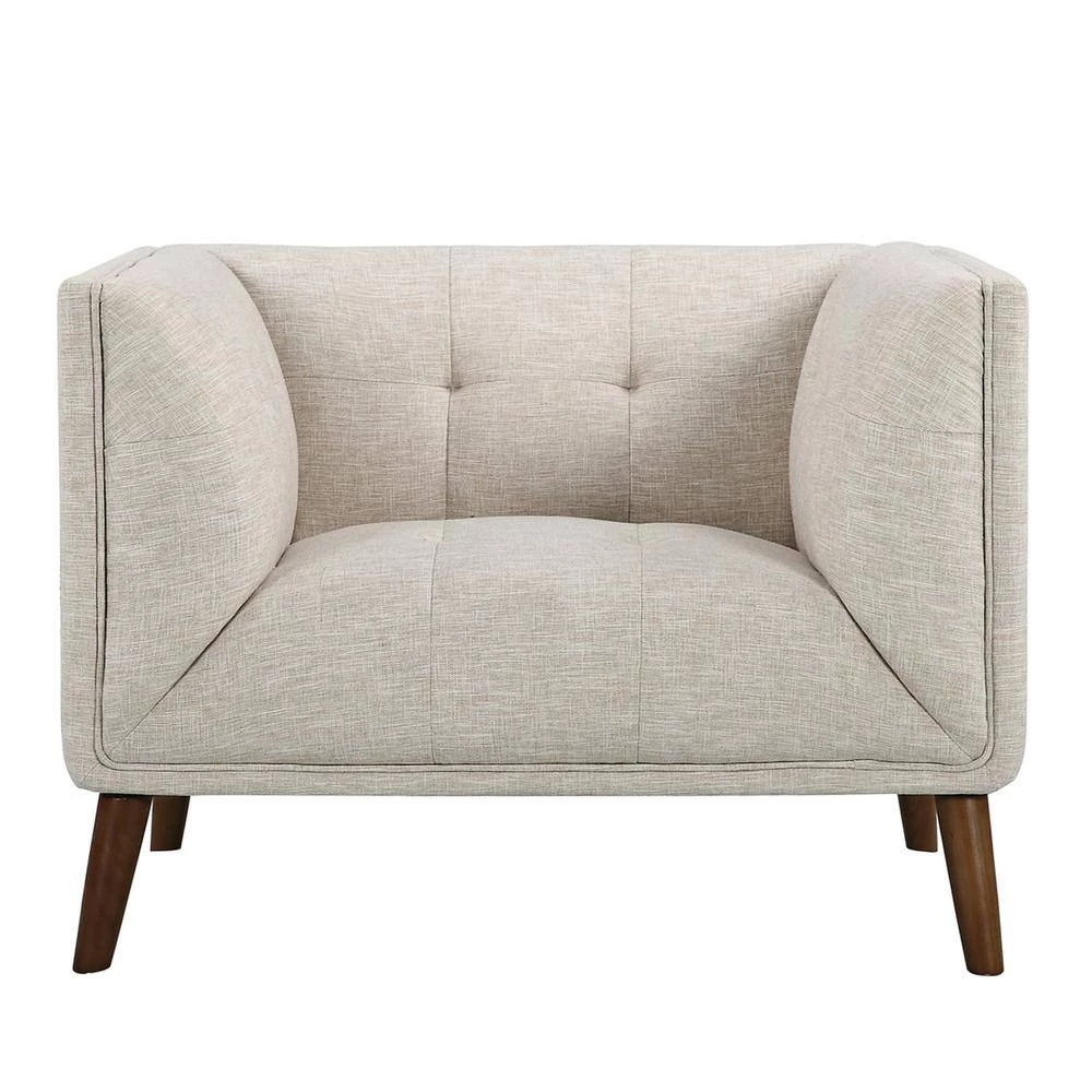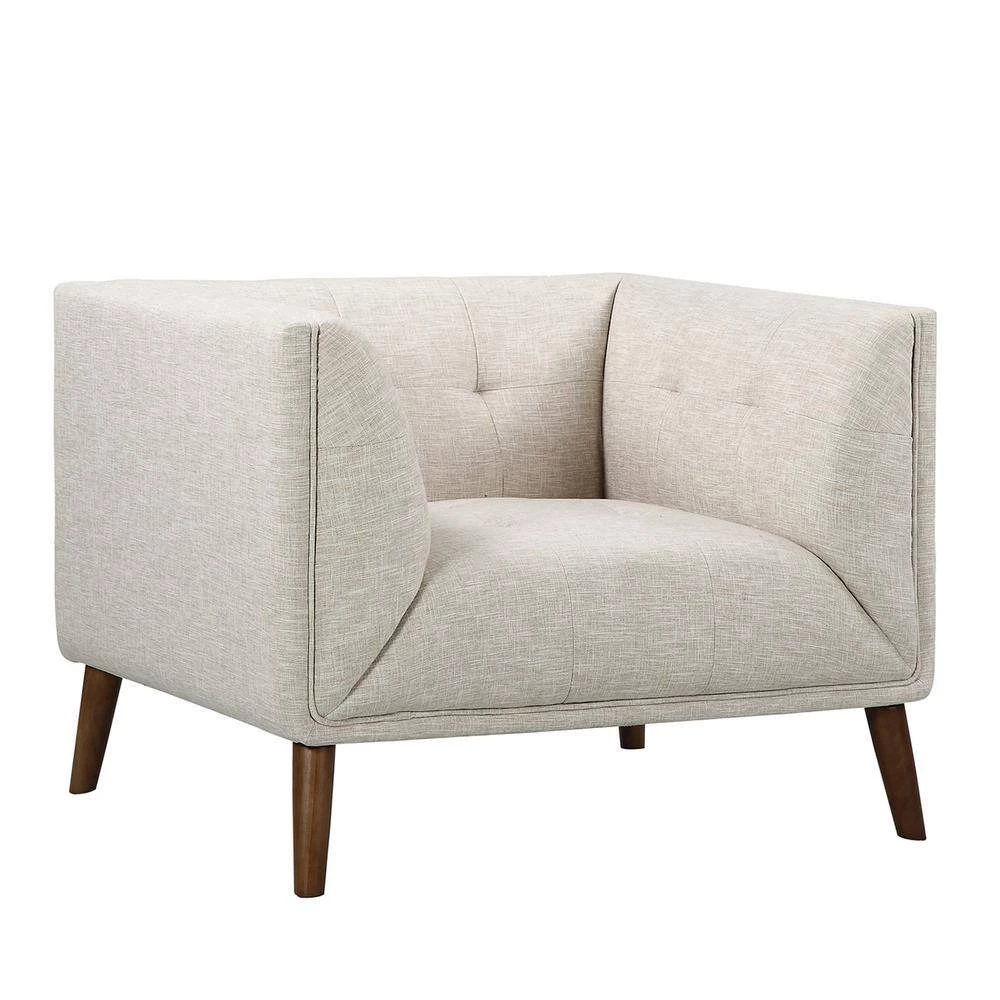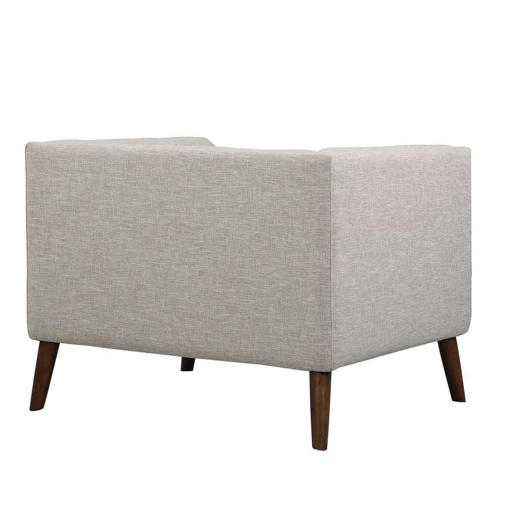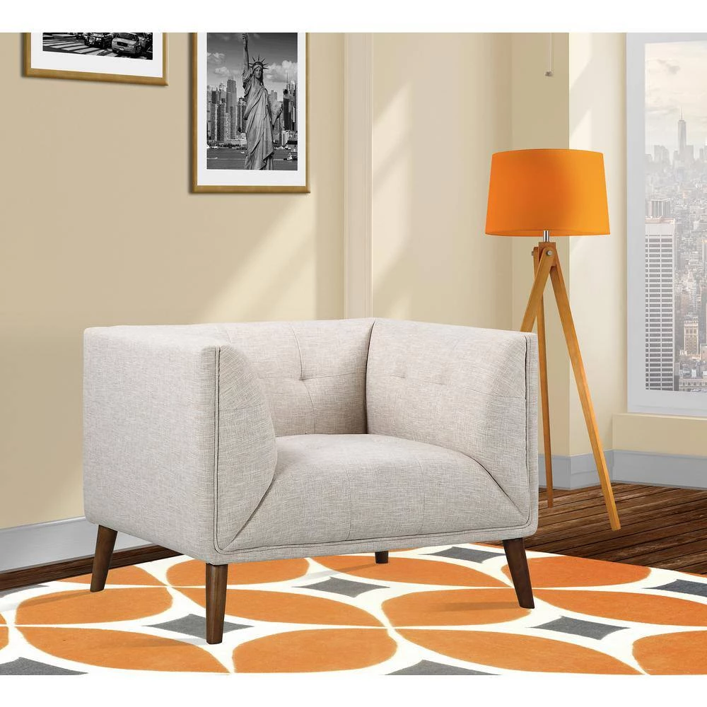 Our Armen Living Hudson modern sofa chair is sophisticated, yet effortless and stunning in style. It brings style center stage in your space, with its tufted back and even arms and seat back. It is compact in nature, which allows you fit this accent chair right into your downtown loft or apartment, but it is still ideal for a standard size living room. This contemporary living room chair is grounded with sleek, slightly flared out wooden legs which gives a mid-century vibe and the neutral fabric upholstery blends in with any color hues you choose for your home. The Hudson chair also comes in a sofa and loveseat to make it a complete collection for your modern home. Available in Beige and Dark Gray Fabrics.