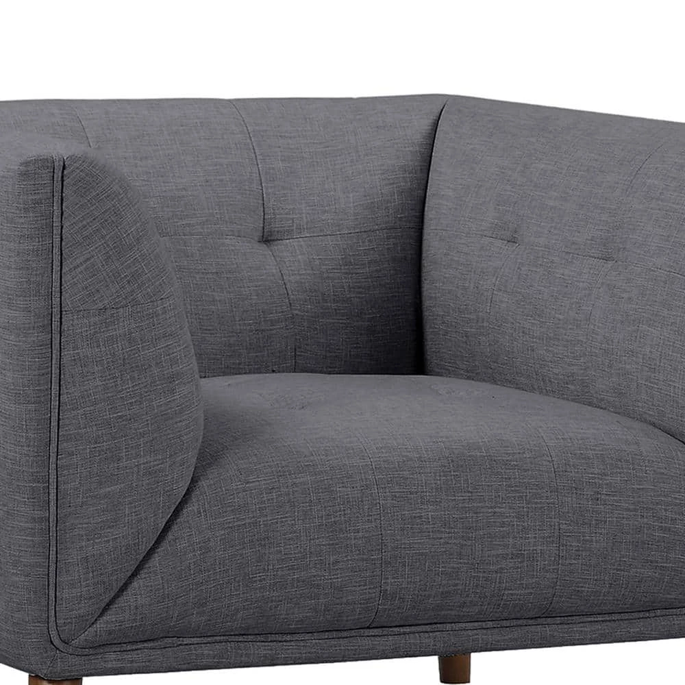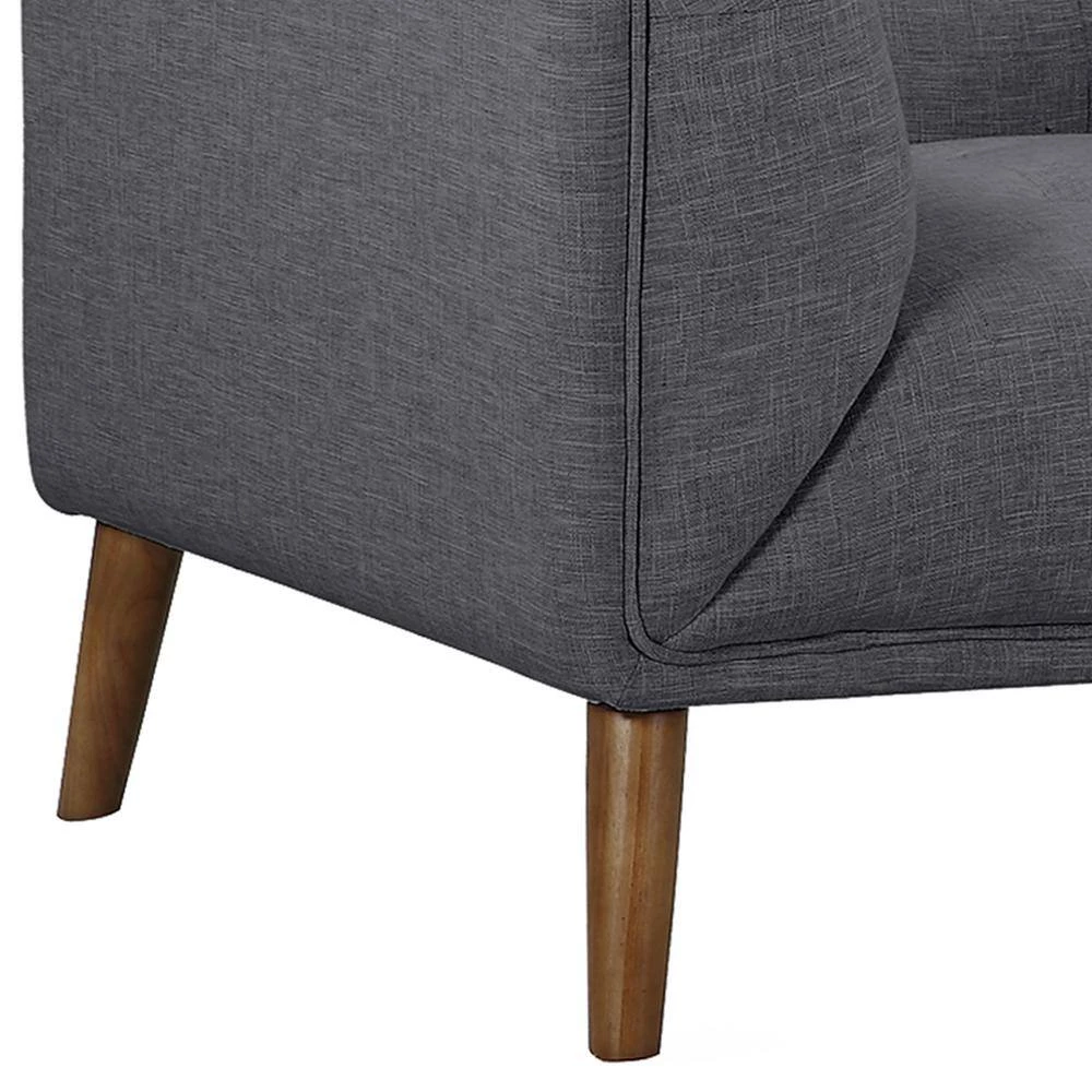 - Dark gray or beige linen fabric upholstery with button tufted back