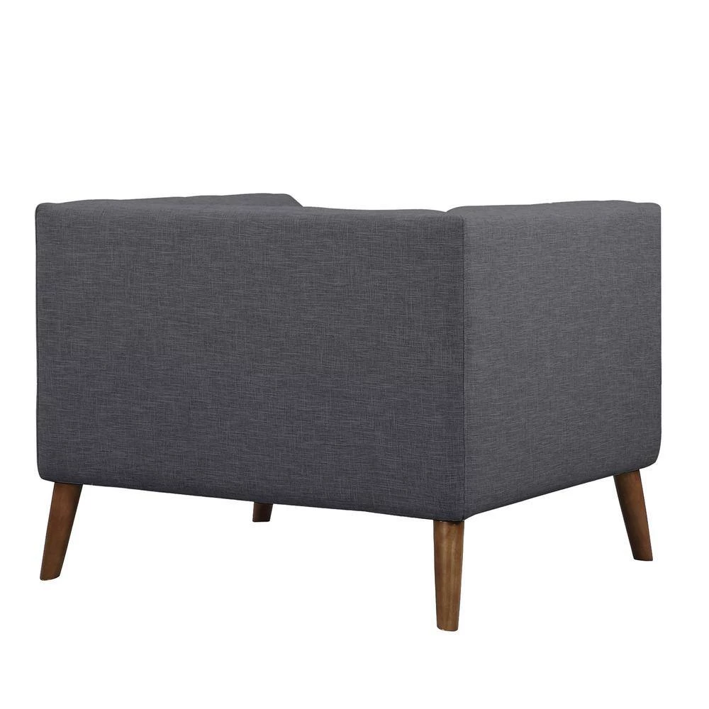 Our Armen Living Hudson modern sofa chair is sophisticated, yet effortless and stunning in style. It brings style center stage in your space, with its tufted back and even arms and seat back. It is compact in nature, which allows you fit this accent chair right into your downtown loft or apartment, but it is still ideal for a standard size living room. This contemporary living room chair is grounded with sleek, slightly flared out wooden legs which gives a mid-century vibe and the neutral fabric upholstery blends in with any color hues you choose for your home. The Hudson chair also comes in a sofa and loveseat to make it a complete collection for your modern home. Available in Beige and Dark Gray Fabrics.