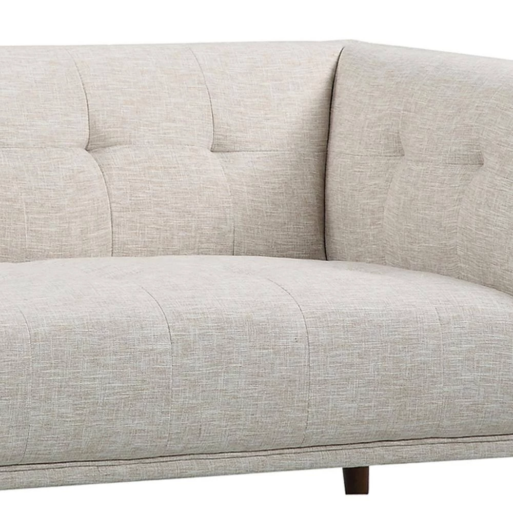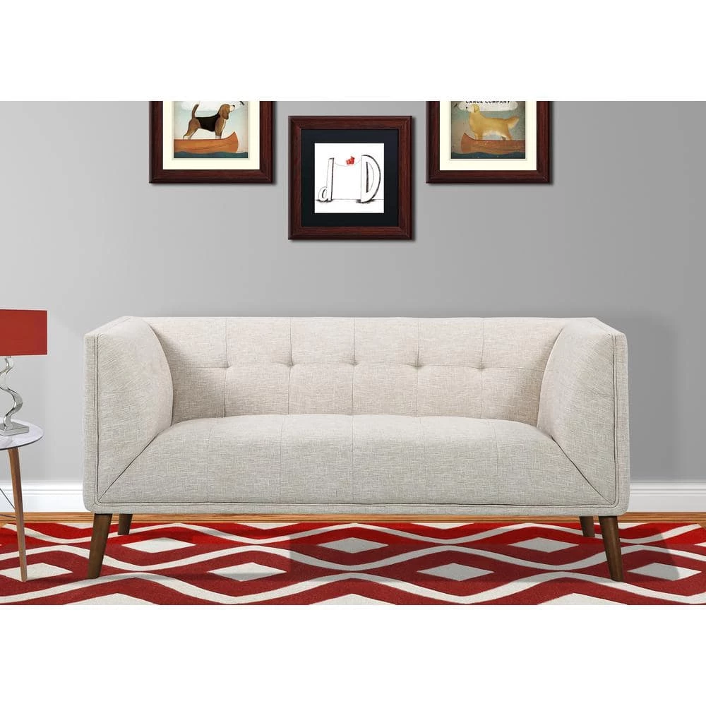 Our Armen Living Hudson modern loveseat is sophisticated, yet effortless and stunning in style. It brings style center stage in your space, with its tufted back, and even arms and seat back. It is compact in nature, which allows you fit this loveseat right into your downtown loft or apartment, but it is still ideal for a standard size living room. This contemporary loveseat is grounded with sleek, slightly flared out wooden legs which gives a mid-century vibe and the neutral fabric upholstery blends in with any color hues you choose for your home. The Hudson loveseat also comes in a sofa and chair to make it a complete collection for your modern home. Available in Beige and Dark Gray Fabrics.
