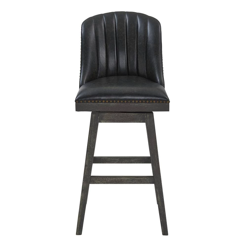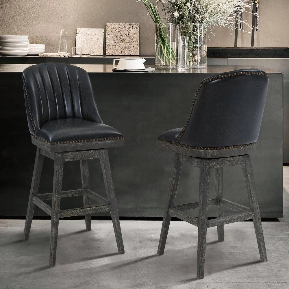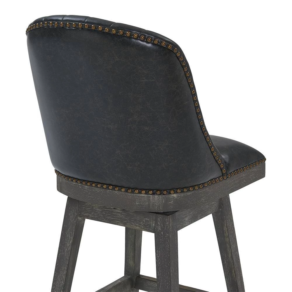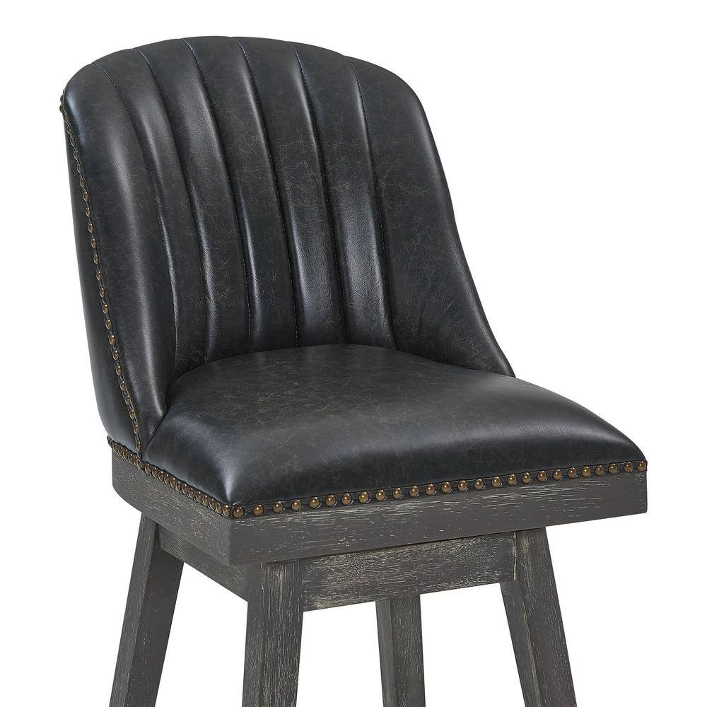 The Armen Living Journey wood Bar Stool is an ideal choice for the transitional or contemporary household. Featuring a dependable rubber wood frame, the Journey Bar Stool is a testament to longevity and reliability. The Bar Stools foam padded, tall back design includes a ribbed texture that presents a unique contemporary aesthetic without compromising on comfort. The Journeys seat includes a 360 degree swivel function that allows for enhanced mobility while seated. The added footrest provides additional support, while the included floor protectors on the feet of the Bar Stool assure that the Journey will not damage your floors when moved. The Journey Bar Stool features an American Gray finish and is sold in two industry standard sizes; 26 inch counter and 30 inch bar height.