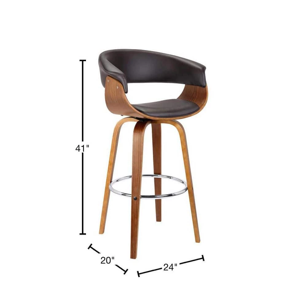 The Armen Living Julyssa mid-century bar stool is a standout in any contemporary household setting. The Julyssa’s beautiful walnut wood frame is perfectly accented by its faux leather upholstered seat and back. The Julyssa is wonderfully versatile, sporting a stylish yet practical appearance as well as a 360-degree swivel function for exceptional mobility. We stand by the quality, the craftsmanship, and the integrity of our product by offering a 1-year warranty for all our products. We want our customers to enjoy our product and we will always be there to help with our top-notch customer service support.