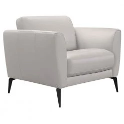 Hope Genuine Dove Grey Leather Contemporary Chair with Black Metal Legs by Armen Living