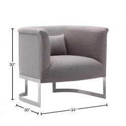 Heritage Gray Fabric Upholstered Accent Chair with Brushed Stainless Steel Legs by Armen Living