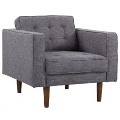 Hudson Dark Gray Linen and Walnut Legs Mid-Century Button-Tufted Accent Chair by Armen Living