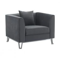 Everest Gray Fabric Upholstered Sofa Accent Chair with Brushed Stainless Steel Legs by Armen Living