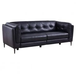 Primrose Dark Metal and Navy Genuine Leather Contemporary Sofa by Armen Living