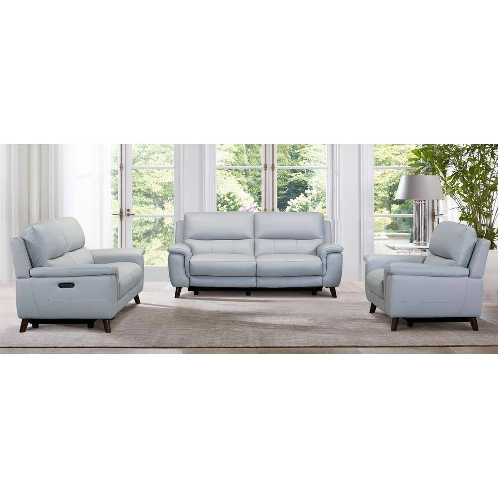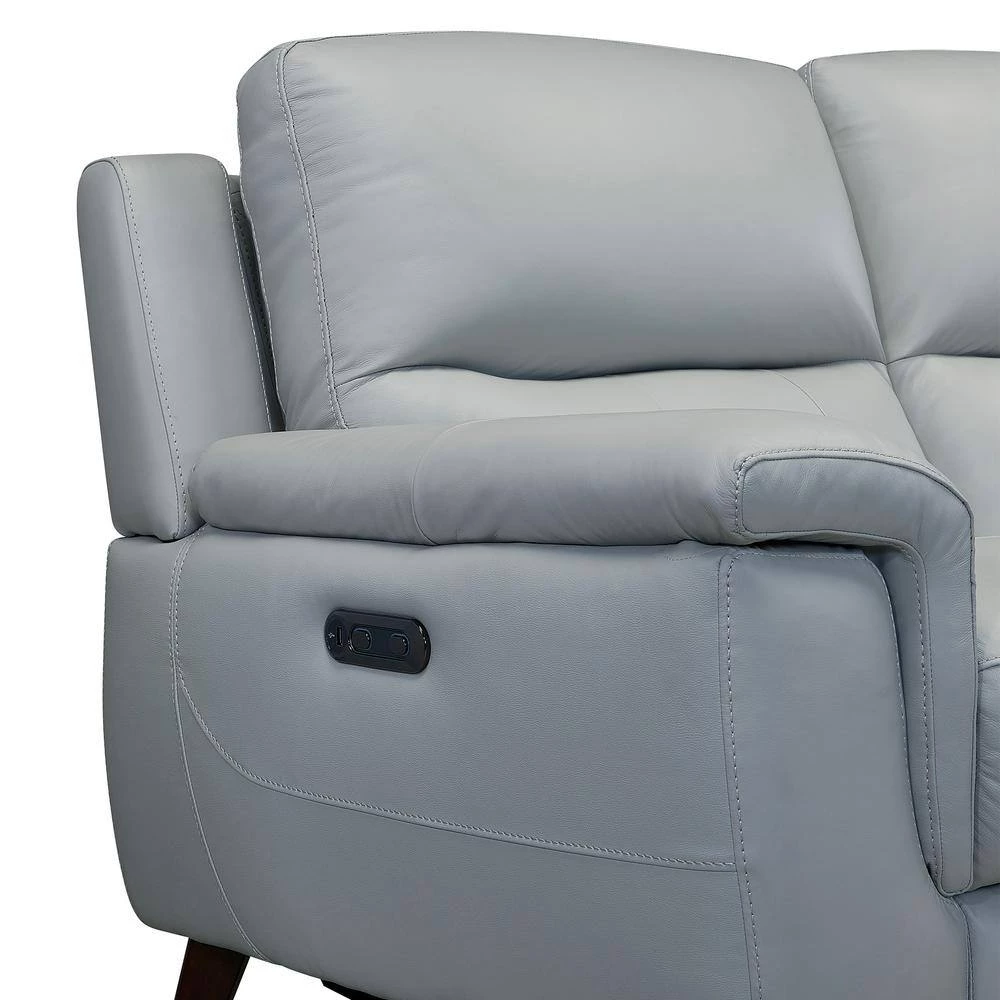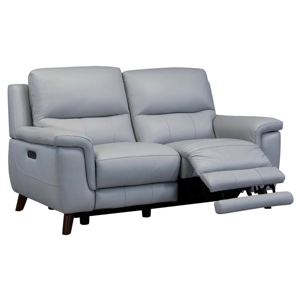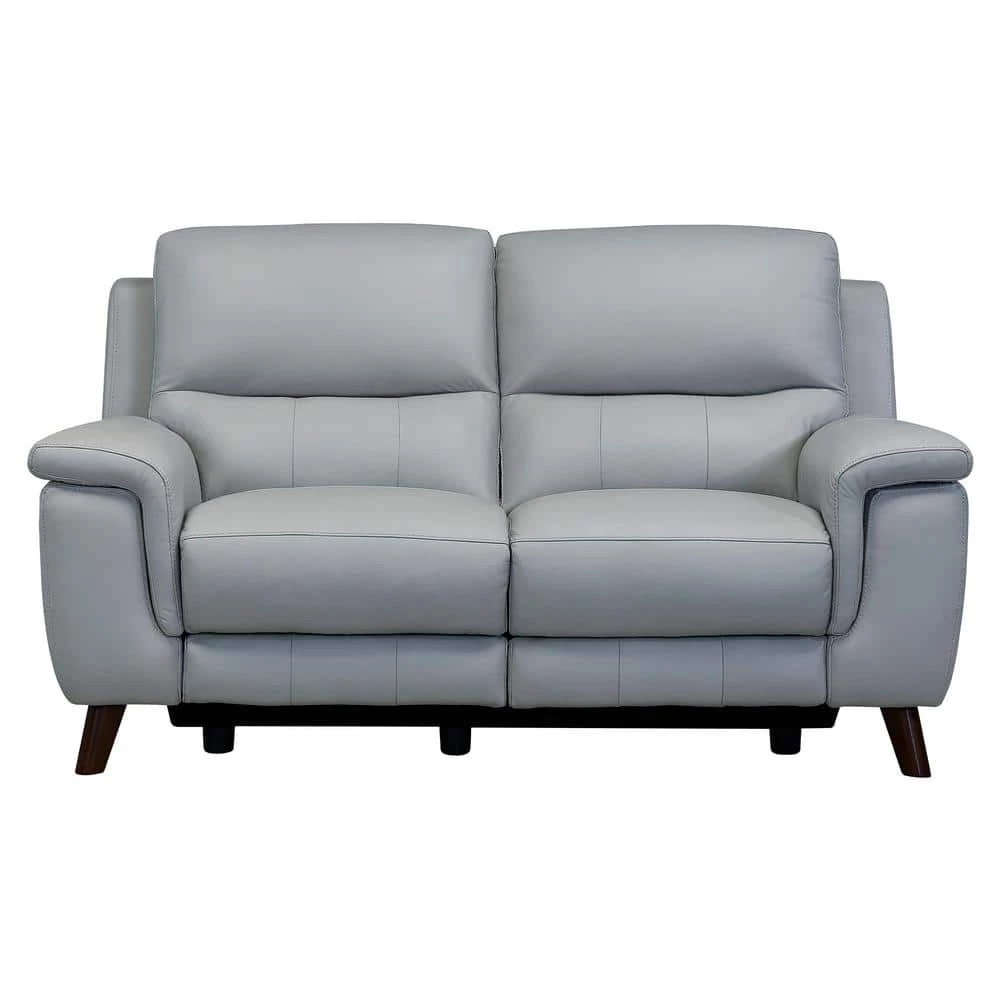 The Armen Living Lizette Contemporary Top Grain Leather Power Recliner Loveseat with USB features a leg lift mechanism that allows for easy reclining options, offering you an exceptional degree of comfort and relaxation. The impressive frame design features a wood frame construction, visible prominently on the loveseats elegantly slanted legs. The loveseats tall cushioned back, plump seat and supportive arms provide enhanced user comfort without compromising on the loveseats stylish aesthetic quality. The sleek 100% genuine leather upholstery is very appealing to the eye and resonates an air of modern sophistication. The Lizette collection is available in a sofa and reclining accent chair upholstered in genuine dove grey leather.
