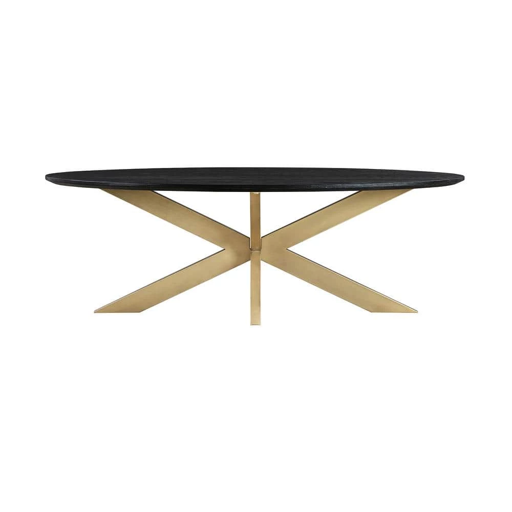 Bring timeless elegance to your home with a Lombard oval coffee table in black brushed oak. Its sleek oval top beautifully showcases the rich natural grains of Oak. The coffee table elevates its surrounding with a sleek and modern look. The brass spider leg base of the table delivers a playful yet effortless design. Exuding a dose of elegance, our coffee table remains a perfect match for your modern home. Oval coffee tables are ideal because their elongated shape allows for maximum space to position your decor or belongings, while the rounded corners take up minimal room. It can make your favorite centerpiece stand out to serve as a stylish and functional addition to your living room, bedroom, or home office. Oak is a highly durable hardwood used for thousands of years. It has a unique grain pattern derived from the rings of the oak tree. It contains high levels of tannins, allowing the wood to resist insects, mould, and fungus naturally. The Lombard oval coffee table features a beautiful black brushed oak tabletop and brass legs.