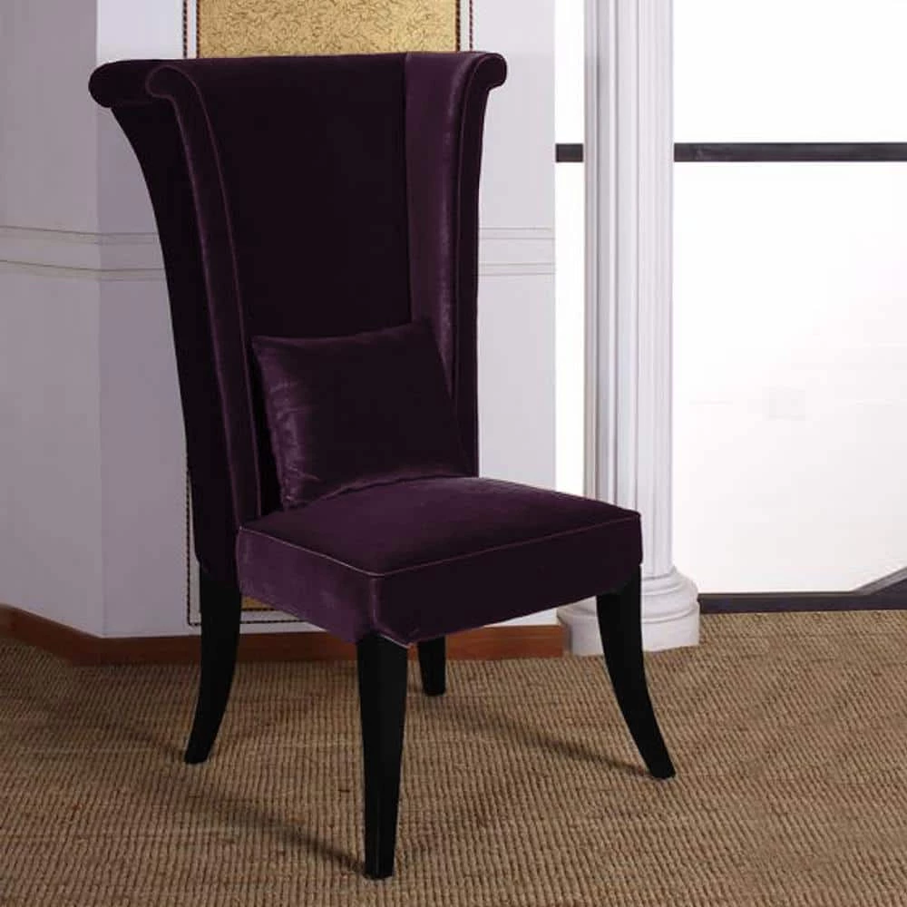 The Armen Living Mad Hatter contemporary dining chair is a truely unique piece sure to be a standout in any modern household. The Appropriately named, tall back and velvet upholstered Mad Hatter represents a truely novel twist on the traditional dining chair. The plusly cushioned seat and back provide an ideal level of support while resonating a true elegance. The Mad Hatter frame is constructed using a sturdy hardwood, assuring many years of comfort and stability. The Mad Hatter is available in a multitude of colors, including: Black, Gray, Purple and Red.