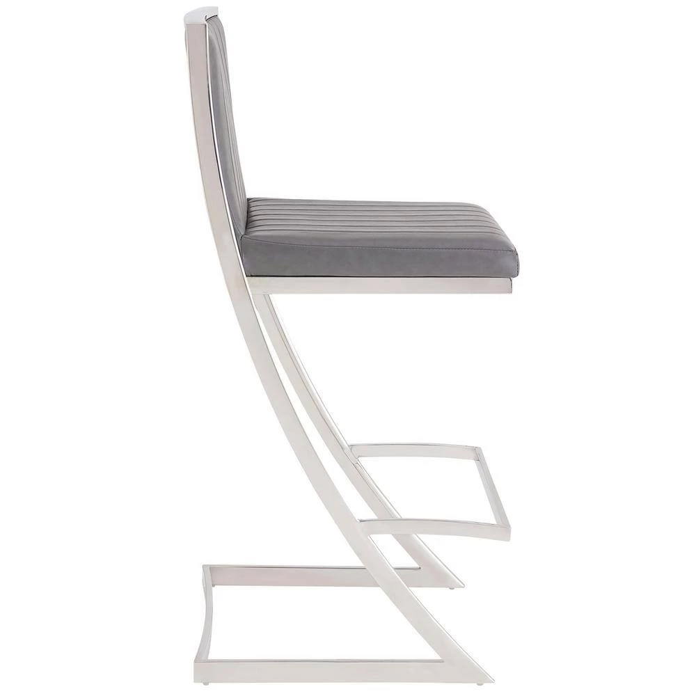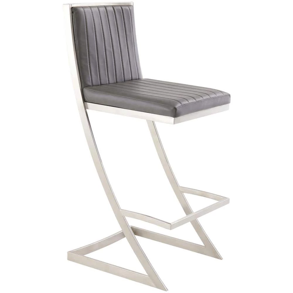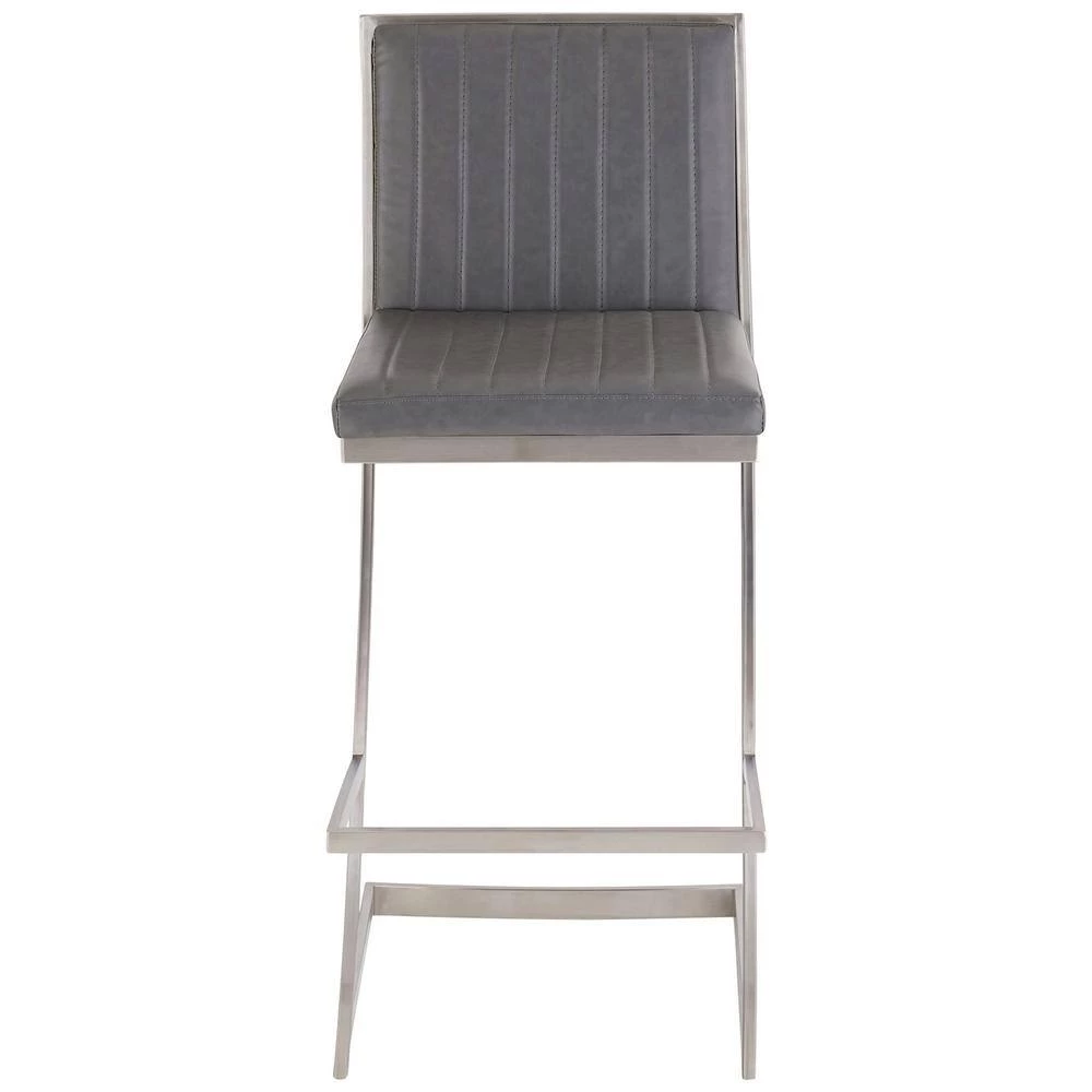 Sleek, simple, modern: The Marc Modern Faux Leather and Brushed Stainless Steel Bar and Counter Stool makes for a handsome addition to your home bar or kitchen island. Angular metal frames are offset by modern channel tufted cushions that boast maximum comfort, so the conversation will last well after the last drink is poured. The Marc stools are available in your choice of black or Gray soft faux leather upholstery with a brushed stainless-steel frame in 2- industry standard heights: 26 in. counter height or 30 in. bar height.